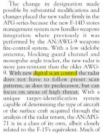 I genuinely think this “digital scan control” on the APG-71 has to be similar to priority track on the Eurofighter’s Captor M. I cannot find any other US radar that is described with this feature, even the AESAs.