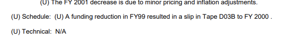 From how the US government works it was actions specifically planned for that year and included upgrades that were missed due to 1999 budget. Northrup wasn’t paid for the tape and they wanted their money.