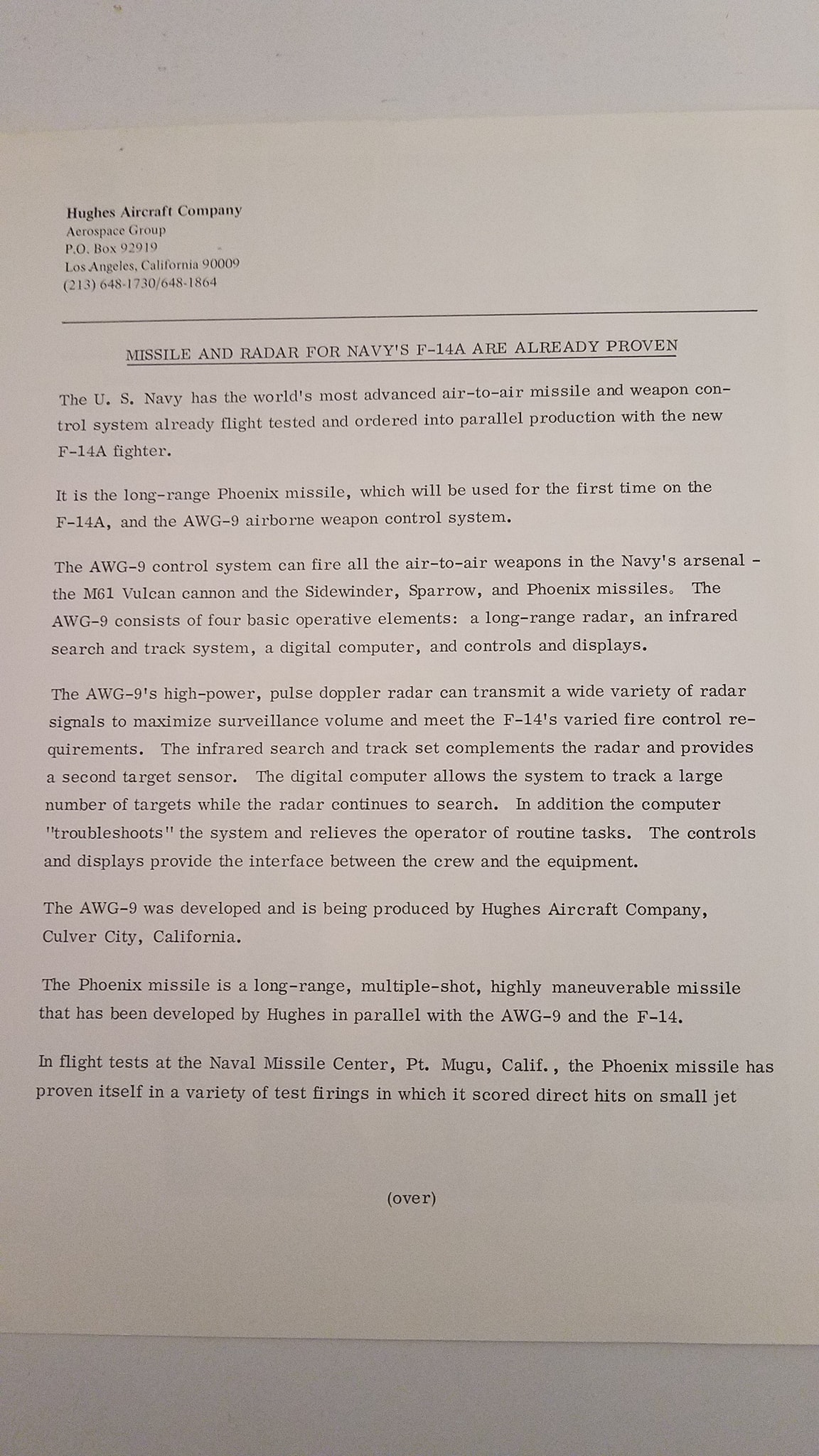 I’ll just post this here instead of the Aim-54 thread, but Hughes themselves calls the Aim-54 a “highly maneuverable missile”.