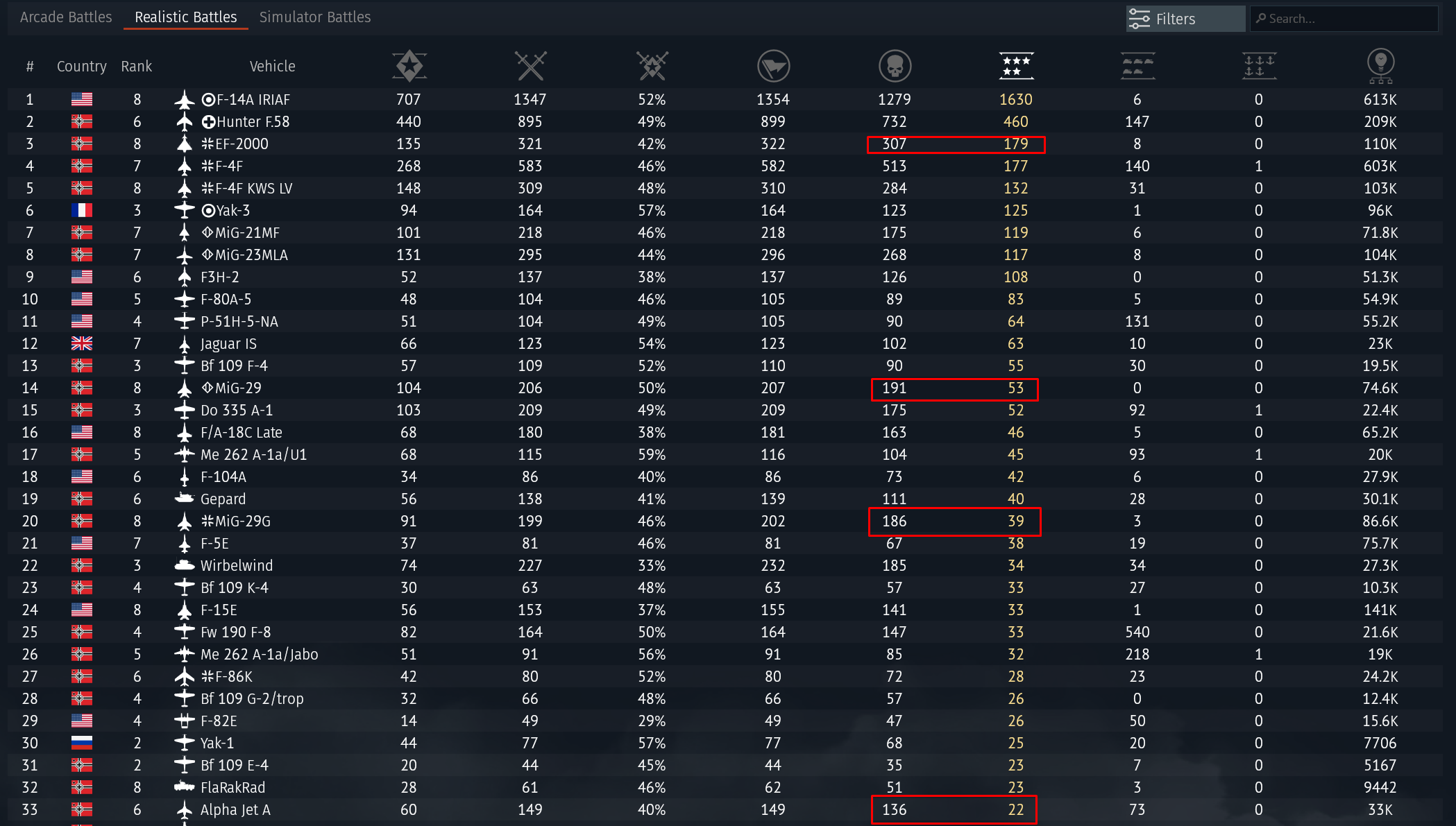 If you look at the statcards of Irani F14 players you see that with every plane, regardless how OP it is their stats are insanely garbage. Like literally 800 deaths 200 kills in su30mkk kind of garbage.