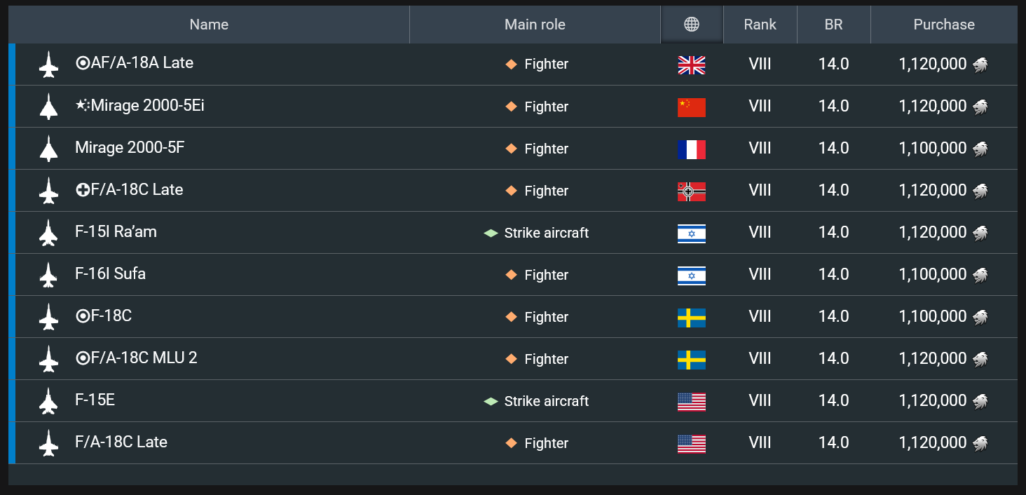F-18s, Mirage 2000, and F-16I are inferior aircraft to F-15E and F-15C GE. Why should they continue sharing the same BR? Why should American aircraft have this theme of being under-BR’d? And Israel in the case of F-15I being paired with the F-15E…