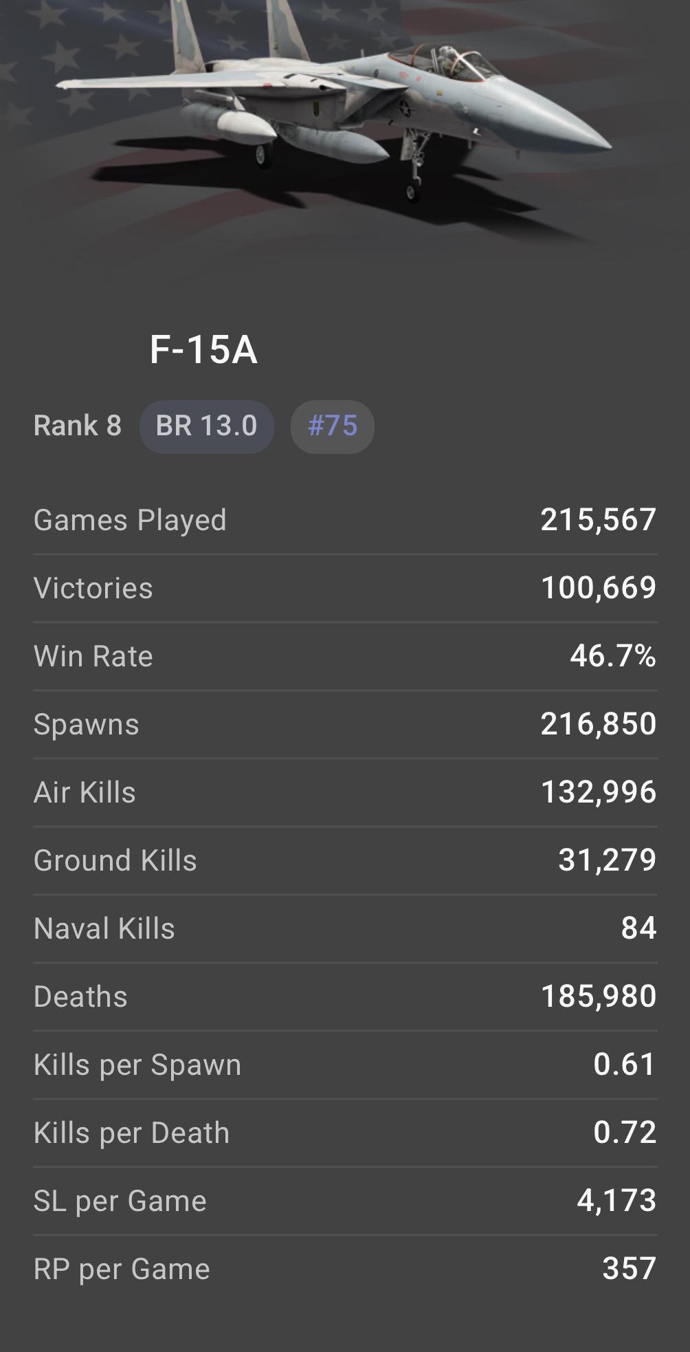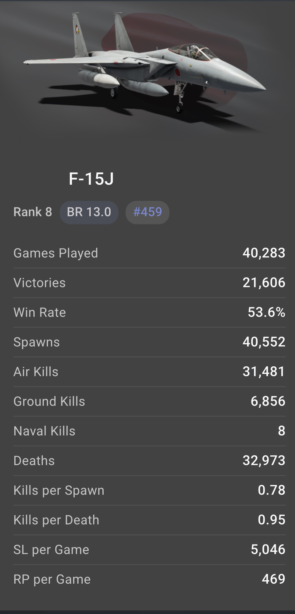 It isn’t. Why would you try to lie about that lmao. It’s 25% higher on the F-15J. Which almost directly corresponds to the discrepancy in KPS and KD of ~30% between the vehicles. The two are intrinsically linked.