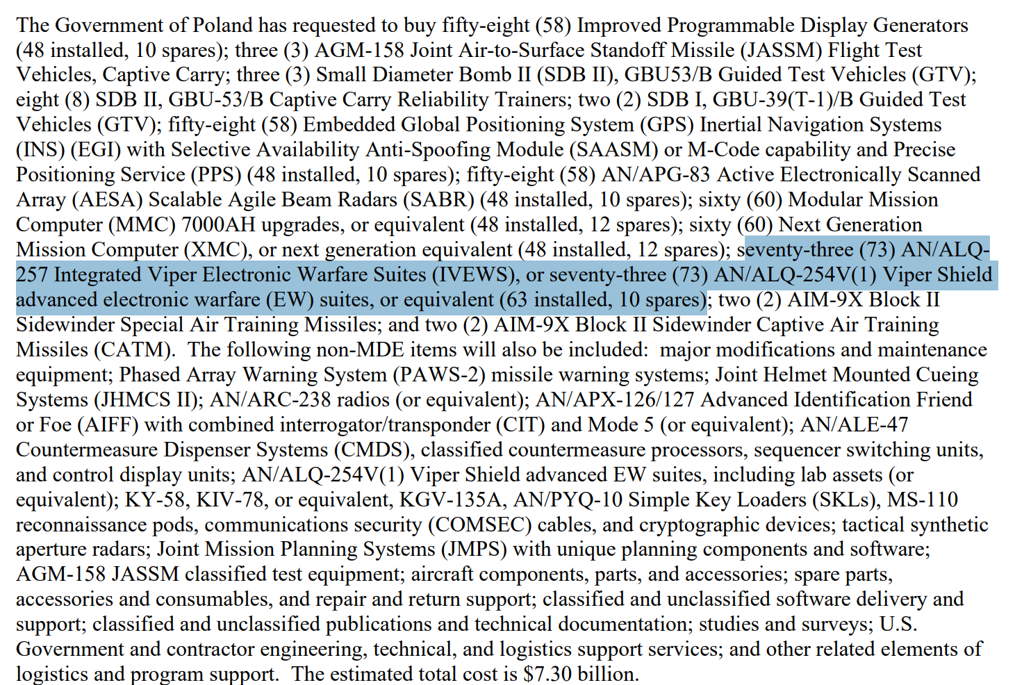 That’s a contract request, as I’ve said the only users of ALQ-257 are domestic F-16 units.