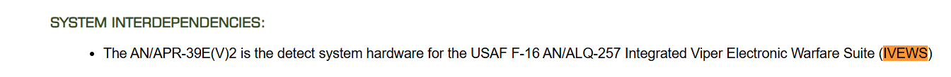 Wait. It says that APR-39 is detect system for USAF F-16 IVEWS. Nothing more.