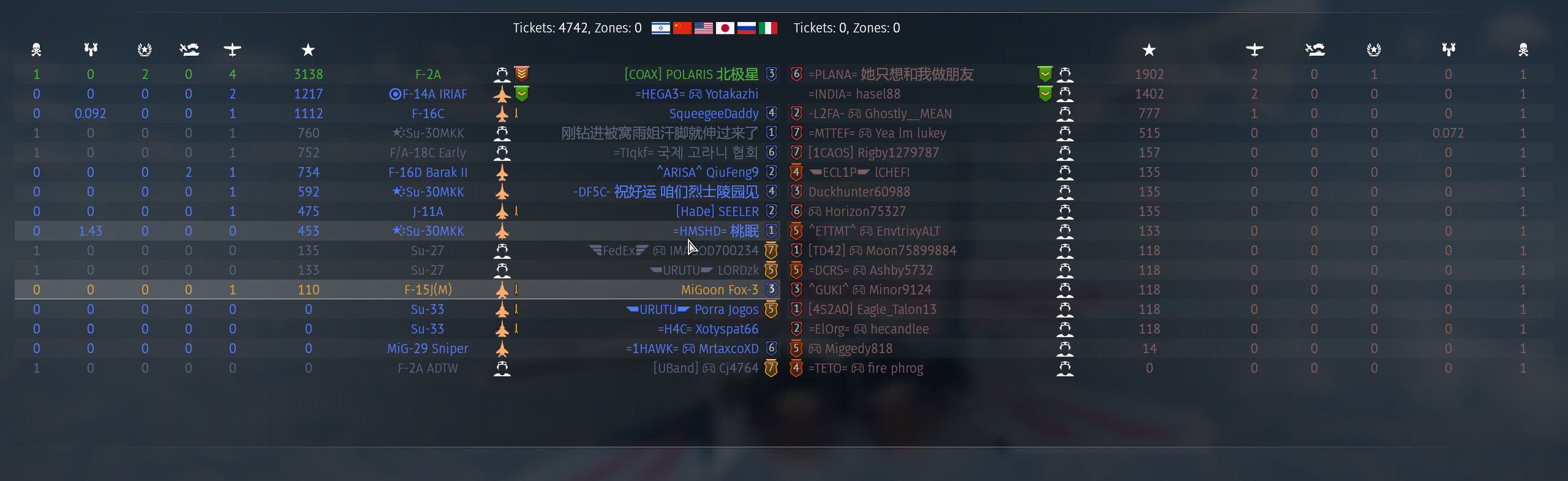 That’s the biggest problem with slower planes like the F/A-18 or F-2, by the time you get into the fight one team or the other is gone, so you either have nothing to shoot or the entire enemy team sweating on you for the last kill.