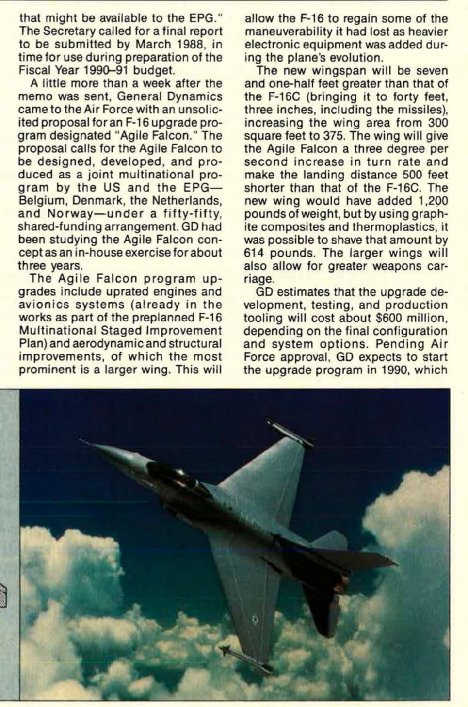 This is something that General Dynamics was already well aware of in the late 1980’s. This is why they had planned to develop the F-16 Agile Falcon with a larger wing.