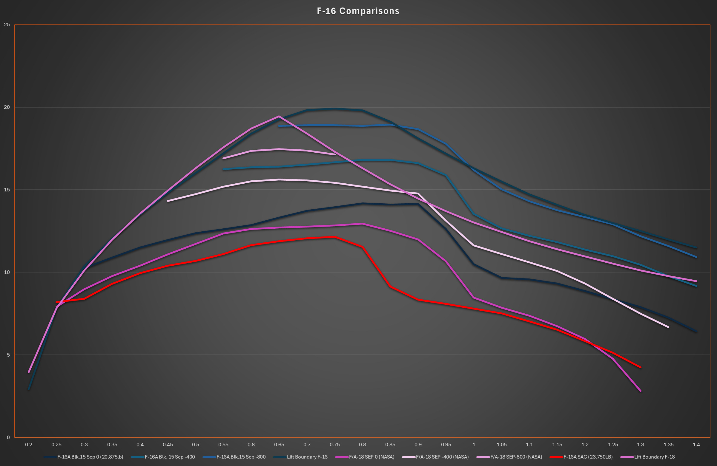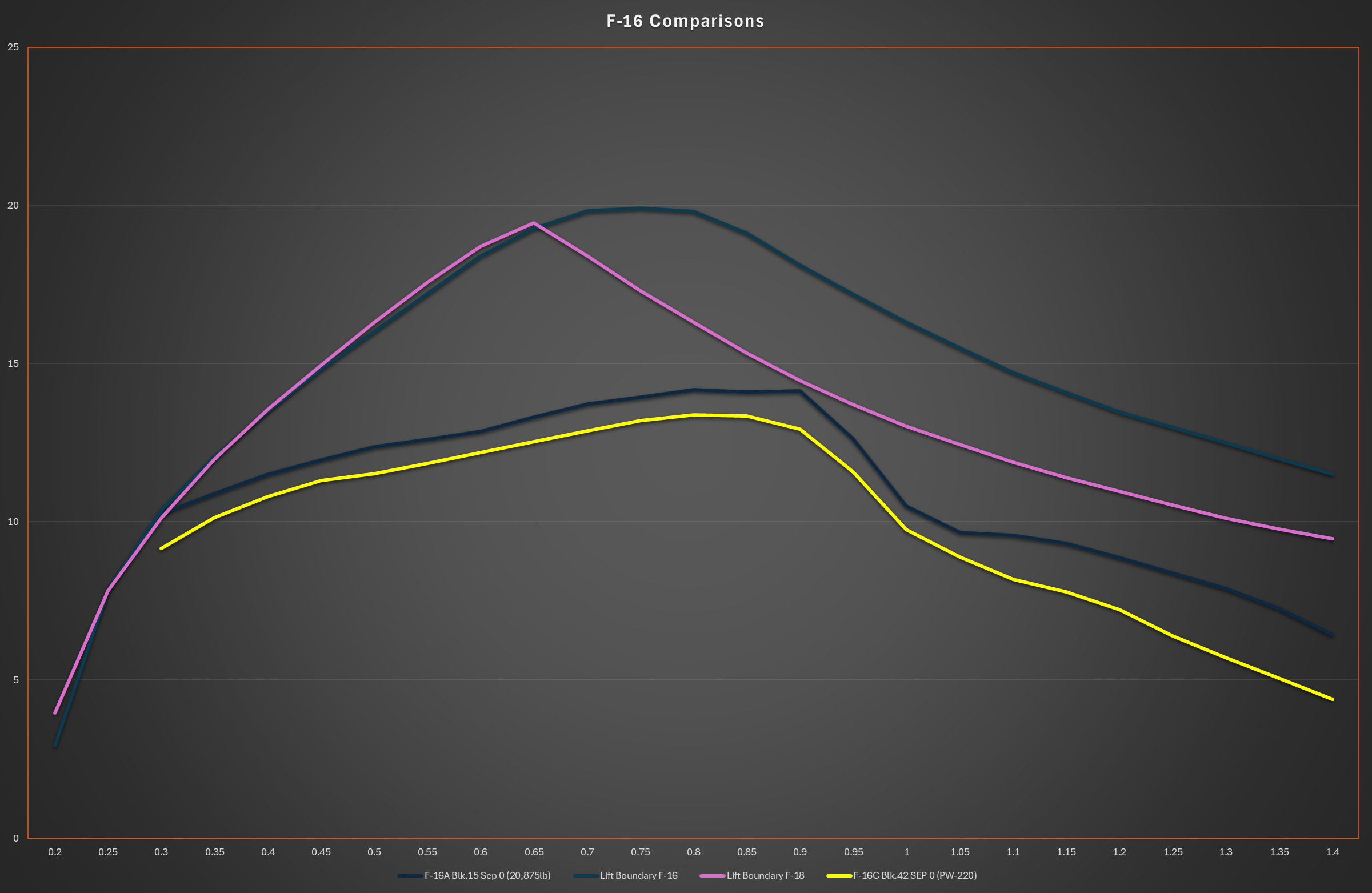 I also have figures for other F-16C variants but it is not clear if they can be shared on the forums but the comparison remains largely the same.