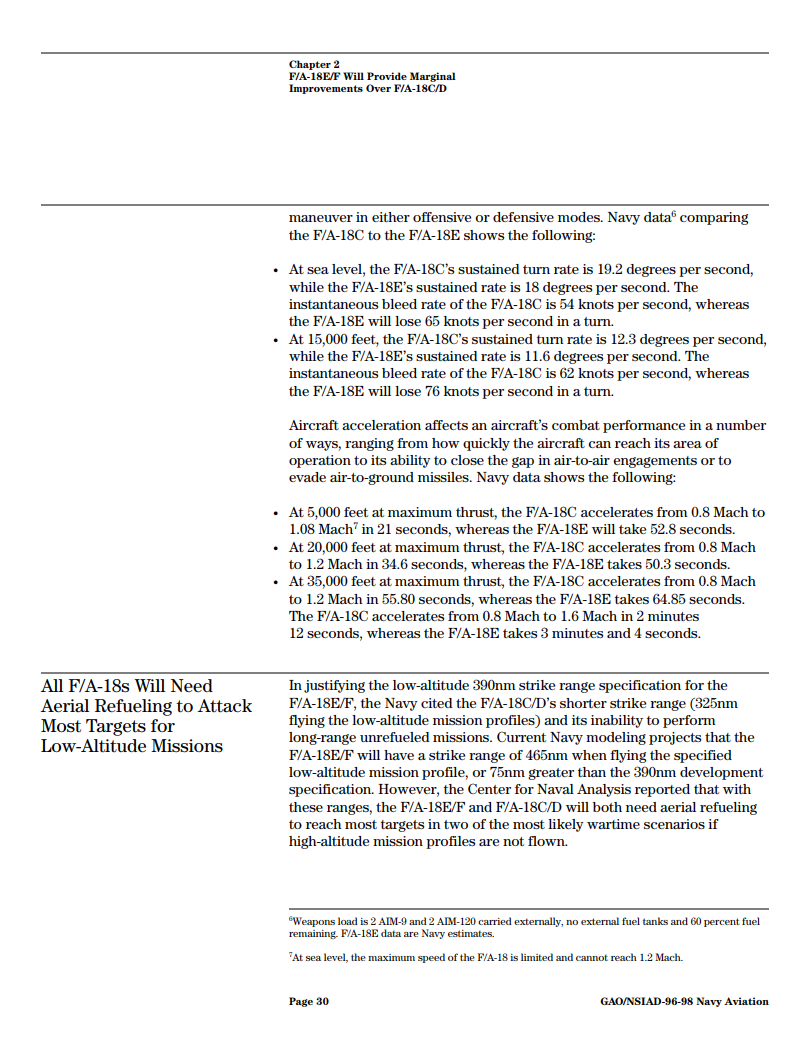 The ESR-D stuff was to showcase that point that it’s only document that I have seen where turn performance is specified at only a specific speed and might not represent best-case-scenario. I also correctly pointed out that the speed that the datapoint is taken at would favor the higher angle of attack limit of the F/A-18 and the fact that the ESR-D values for the F/A-18 are optimistic according to it’s own publisher. Even under optimistic conditions the difference is 5%.