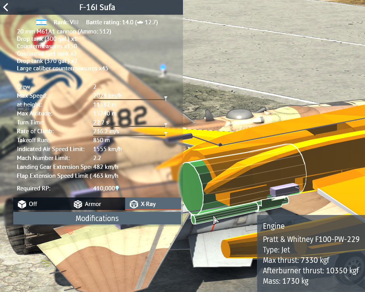 F-16C has the F110-GE-129 and the F-16I has the F100-PW229
