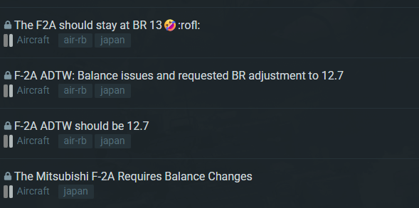 Okay Tiger_Tank_2 calm down. The F-2A is the best 13.0 in the game it suffers from compression like everything else. The MiG-21 Bison is one of the best 12.3s in the game yet it sucks so much because it goes up against fox 3s and the likes. Should it go down to 11.7 to avoid fox 3s? Absolutely not