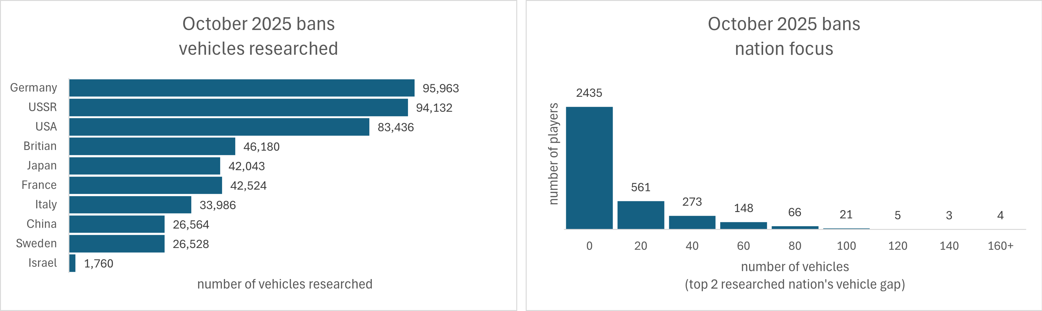 The nation focus chart shows the vehicle research gaps between the top two researched nations per player. Only a handful of banned players focus one nation.