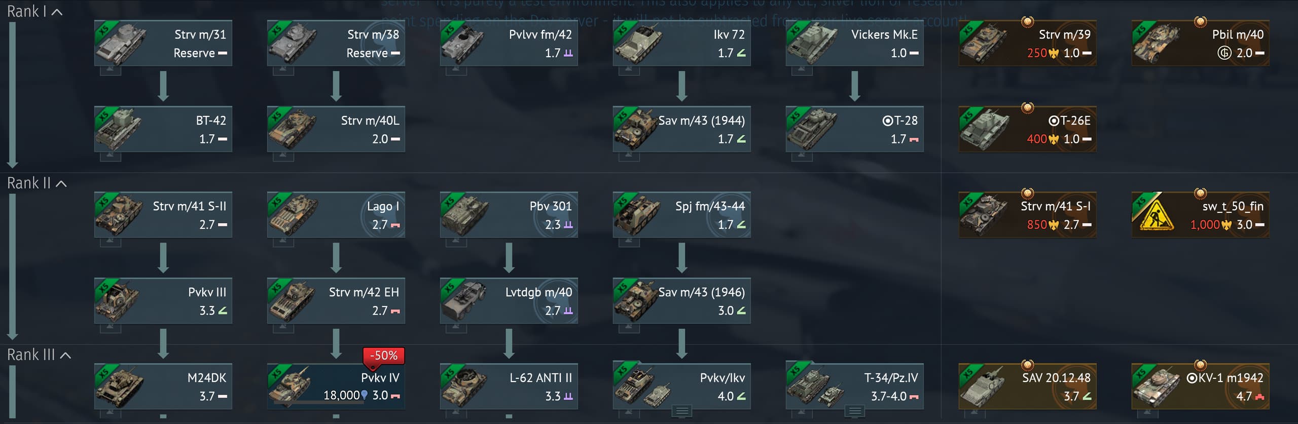 1- The finnish tree only has 4, yes 4 unique vehicles in the tech tree, (BT-42, Vickers Mk6, T-55M and the high tier spaa) ( not counting T72M1 as it is basically a T-72M and CV 90 (fin))
