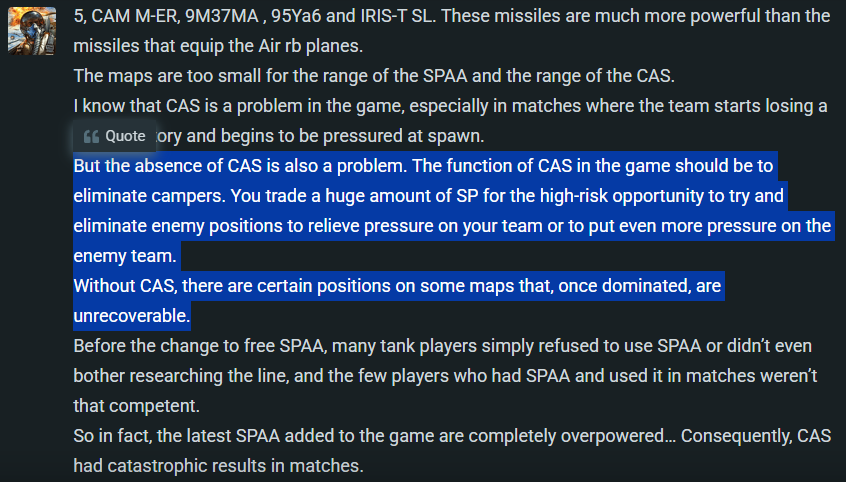 I’ll have you know I ahd a match today with 5 deaths. 4 of those were to planes. And I even tried spawning in SPAA but when CAS is so cheap that there is like 5 planes up it’s not much help