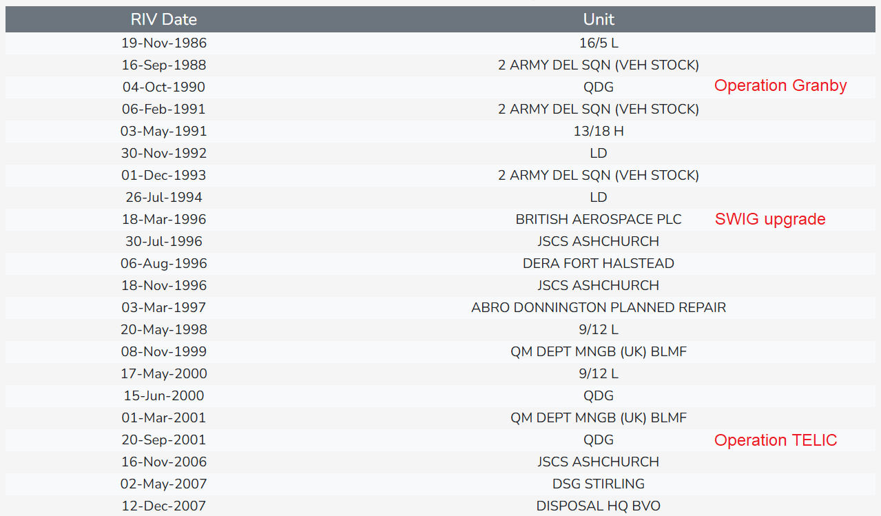 From 1990 to 1995, all 89 of the British Army’s remaining FV102 Strikers were gradually upgraded with SWIG. Following peacekeeping service in Bosnia & Herzegovina in the Implementation Force (IFOR), Striker’s final combat deployment would be in Operation TELIC, the UK’s contribution to the 2003 coalition invasion of Iraq. 1st The Queen’s Dragoon Guards would again deploy Striker to the Gulf, alongside D Sqn, the Household Cavalry Regiment.