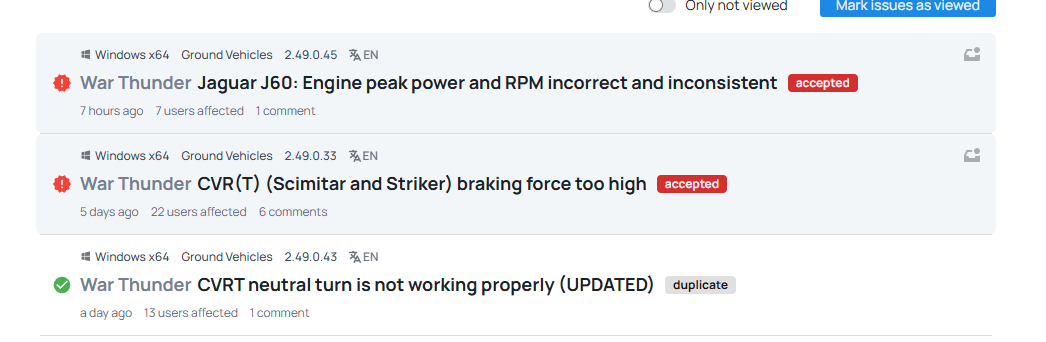 Really good to see the mobility reports go through, driving Scimitar in WT is actually painful.