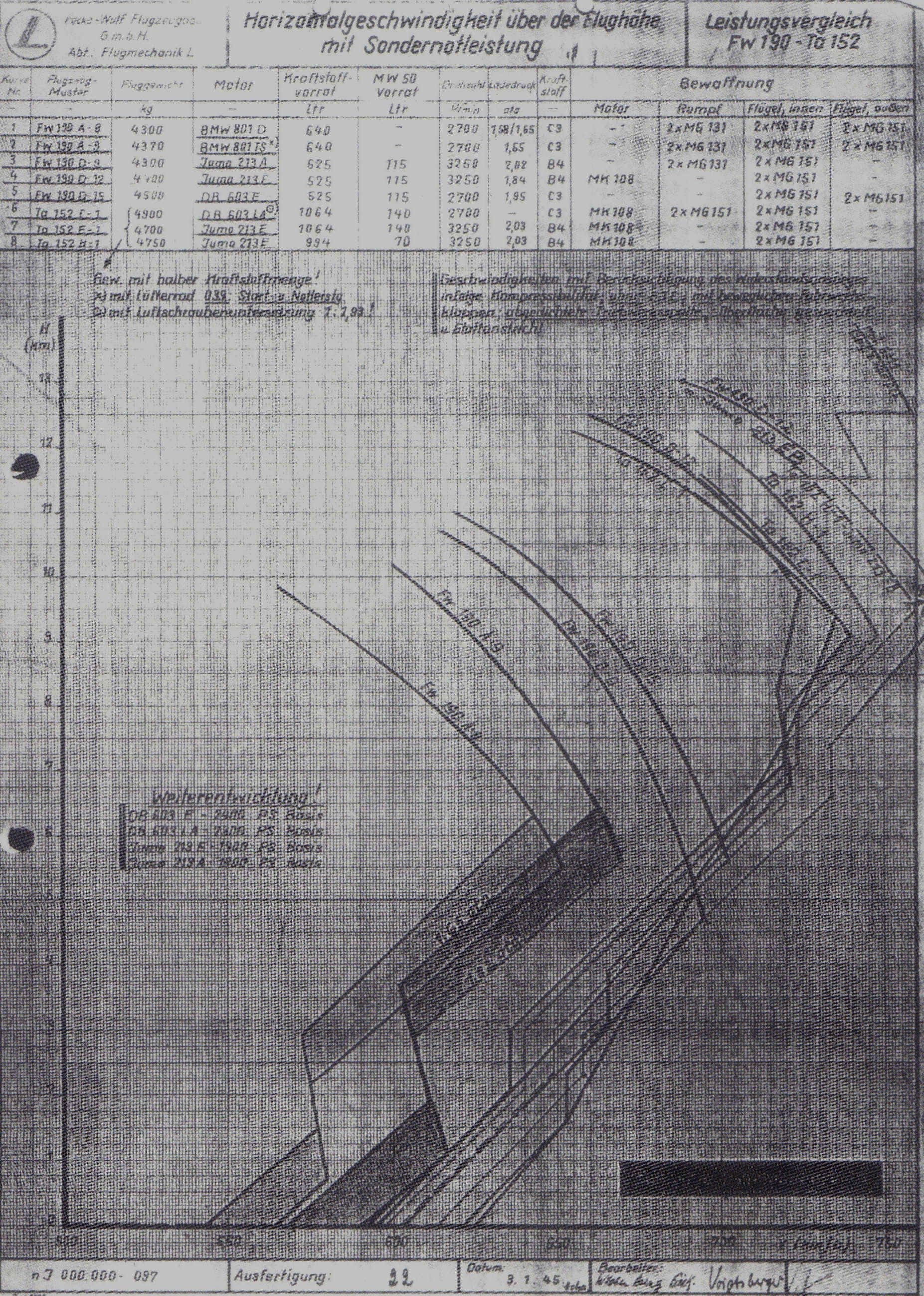 I have Fw190D-9 charts of testing done at Rechlin of series production aircraft that is completely stock, no modification to engine ( 1750 PS maximum ) or airframe as well as charts for a series production D-9 with the Ladedrucksteigerungs-Rüstazt ( 1900 PS maximum ).