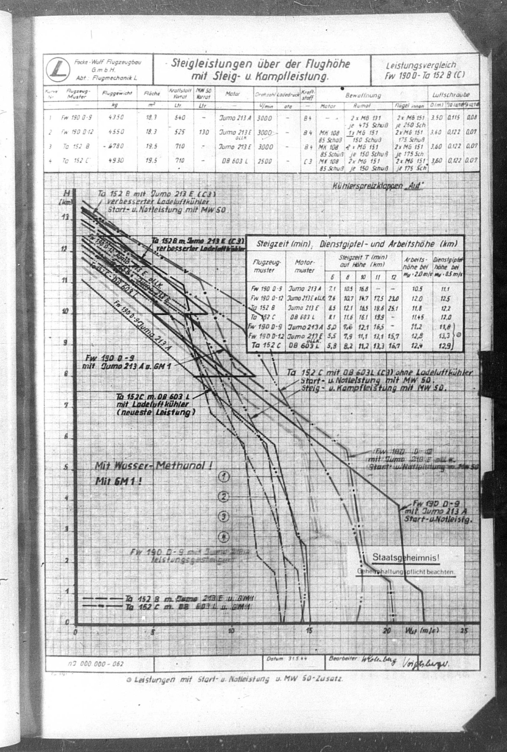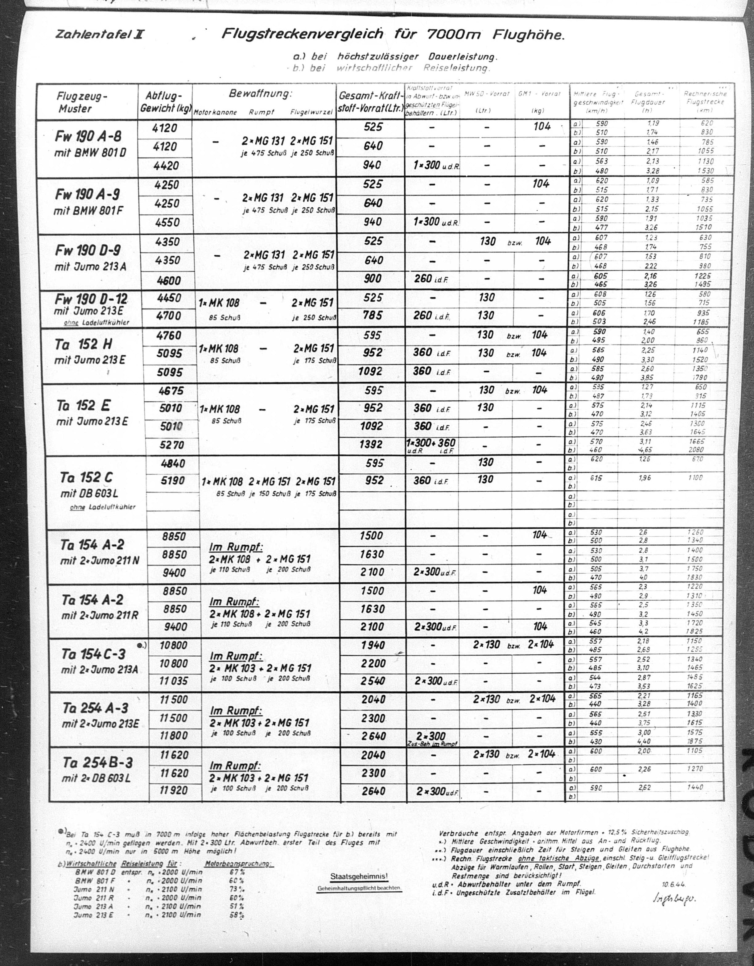 Ta 152 B-1 (Focke-Wulf official stats from January 1945)