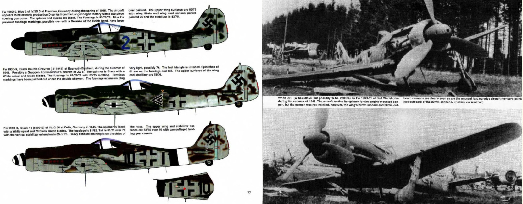 By April 1945 the D-9 was in use with Stab, I, II and III./JG 2, Stab and IV (Sturm)./JG 3, Stab and II.(Sturm)./JG 4, Stab, I and II./ JG 6, Stab, I, II and IV./JG 26 and I and II./JG 301.
