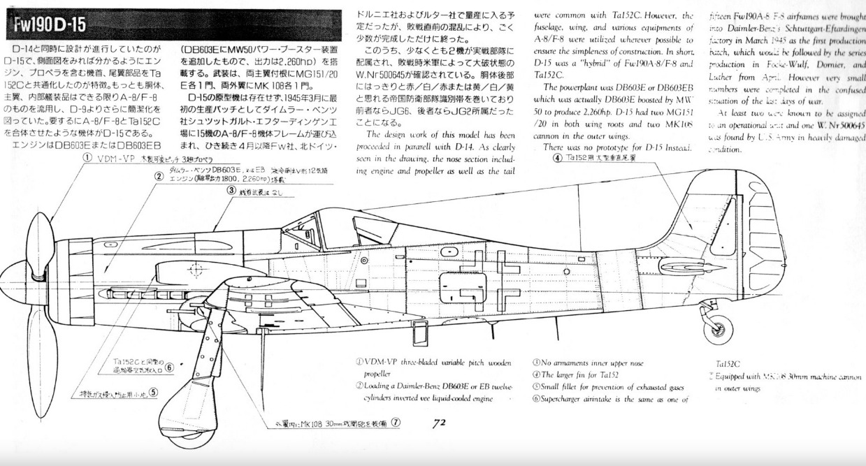 The proposed Fw 190 D-14 and D-15, both powered by improved versions of the dive-bombers 603, came too late to see service with the Luftwaffe.
