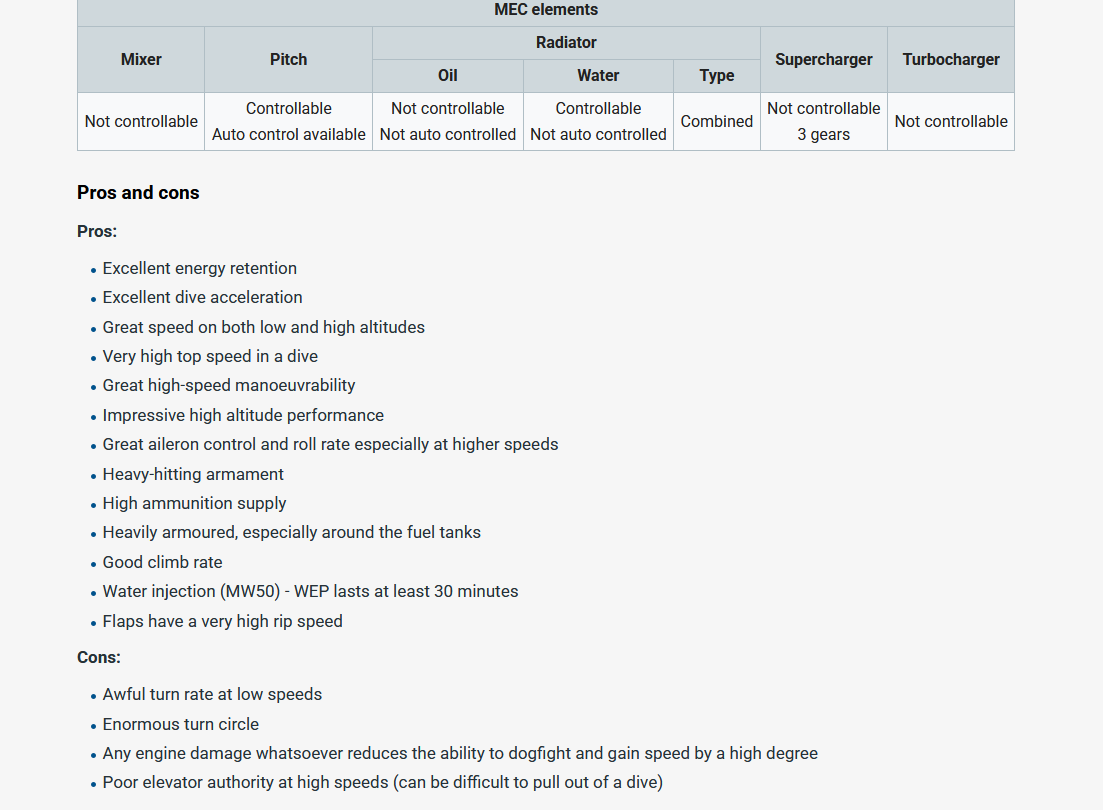 The source of information can be more or less subjective than others and some information can be misrepresented as the numbers for the “type” as a whole. An example would be “P-51” without a reference to which sub-type of either “A”, “B”, “C” etc. and what external or internal variations or modifications existed on the particular aircraft being presented. Performance tests conducted by manufacturers, allied and well as axis, frequently are based on an aircraft that has been prepared for testing by smoothing the surface of the aircraft by various means which may include filling, sanding and polishing as well as properly rigging all flight controls and systems and these tests are conducted, typically by experianced test pilots. Also, the handling qualities and actual turn radius’s are rarely measured but are compared, one type against another, by pilots of varying ability and skill.