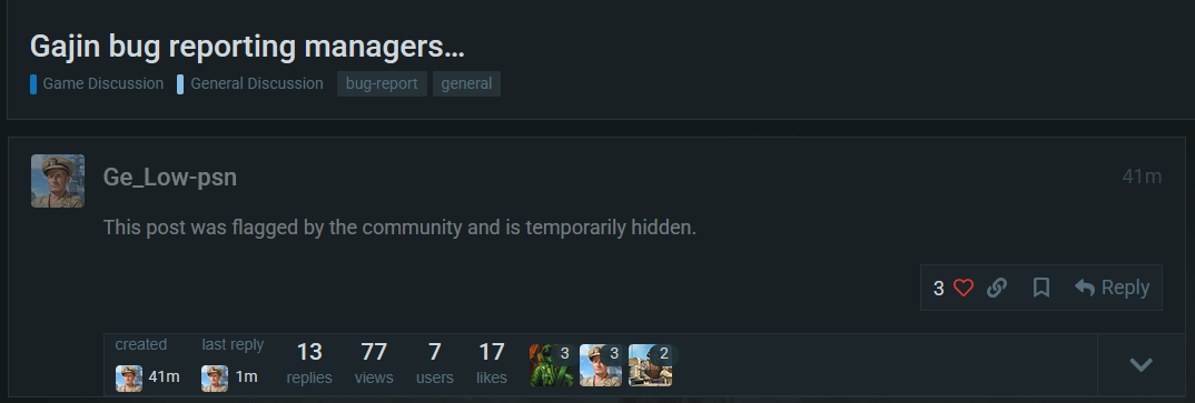 FWIF: There is no “#1, #2” etc. A mod posted about it before, it shows “#1” for the first manager that responds. It does NOT correlate to a specific bug reporting manager. Just wanted to let you guys know.