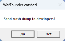 After the last update the game just keeps crashing. I get to the login screen, enter my details, and then instead of loading further it immediately closes and shows War Thunder crashed. I already tried reinstalling the game, checked the integrity of the files, even installed it separately outside of Steam, but nothing worked. The crash happens every single time right after the login screen.