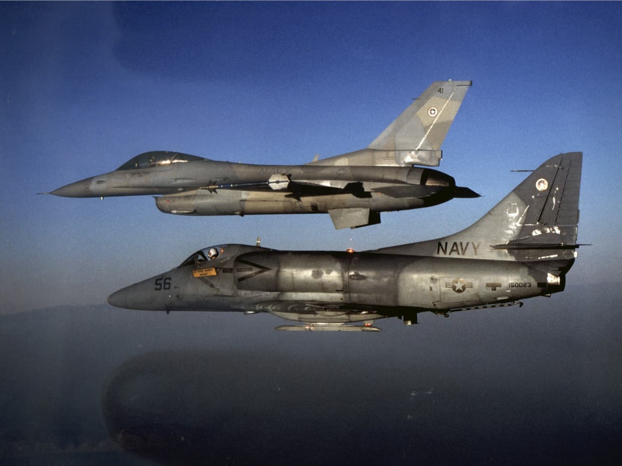 The General Dynamics F-16 Fighting Falcon is arguably the most iconic American single-engine supersonic multirole fighter. It originated from the Lightweight Fighter (LWF) program, initiated as early as 1965 to replace the USAF’s F-105 Thunderchief, A-7 Corsair II, and F-4 Phantom II. Production began in late 1975, and the first examples of the F-16A rolled out in 1976.