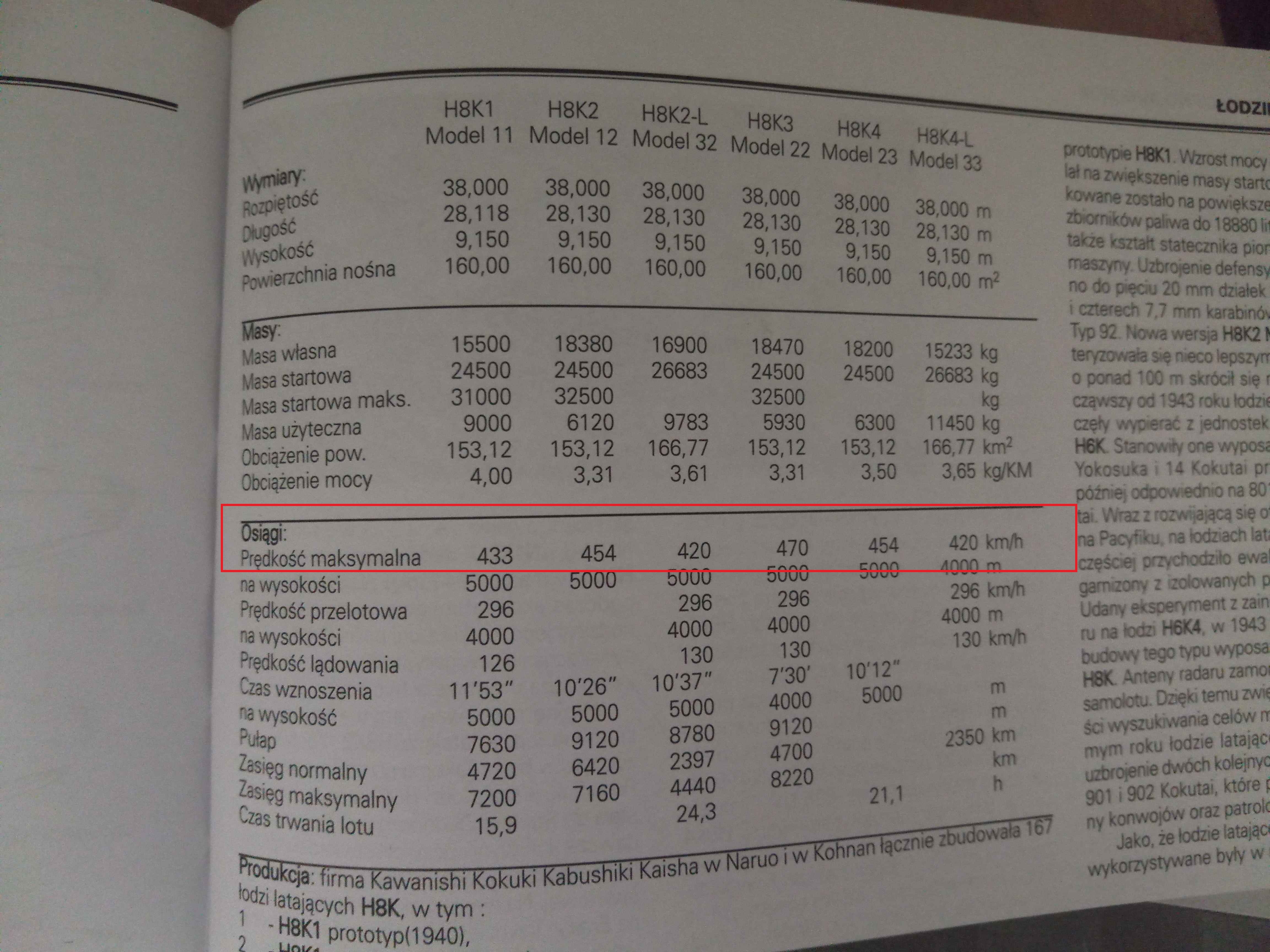 Can someone explain to me where Gaijin got the maximum speed for the Kawanishi H8K2 and H8K3? Gaijin’s stats are completely made up.