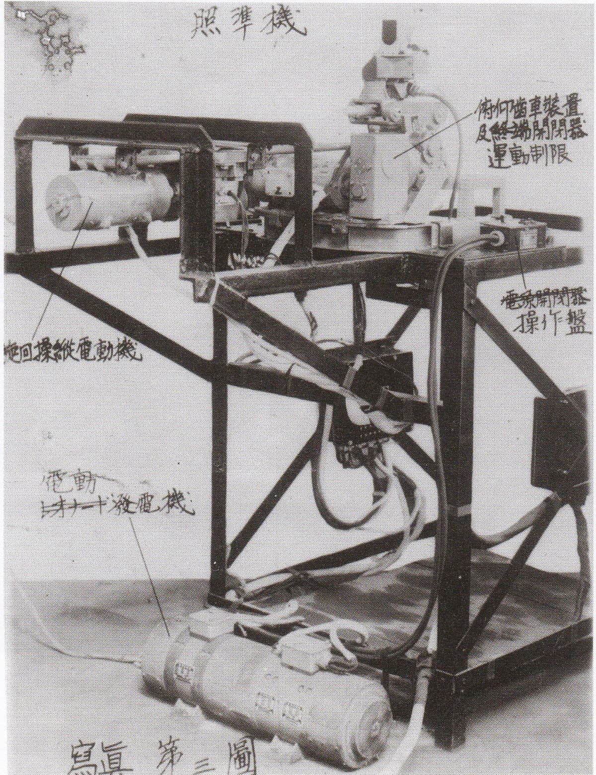 照準機 : Sight、俯仰操縦電動機 : Elevation control motor、旋回歯車装置及運動制限開閉器 : Turning gear and movement limitation circuit breaker 、平行傅動桿: Parallel transmission rod、俯仰及旋回角度指示器 : Elevation angle and turning angle indicator、眼鏡 : Spectacles、距離調定輪 : Distance settlement ring?、眼鏡修正器 : Spectacles compensator、操縦器 : Controls
