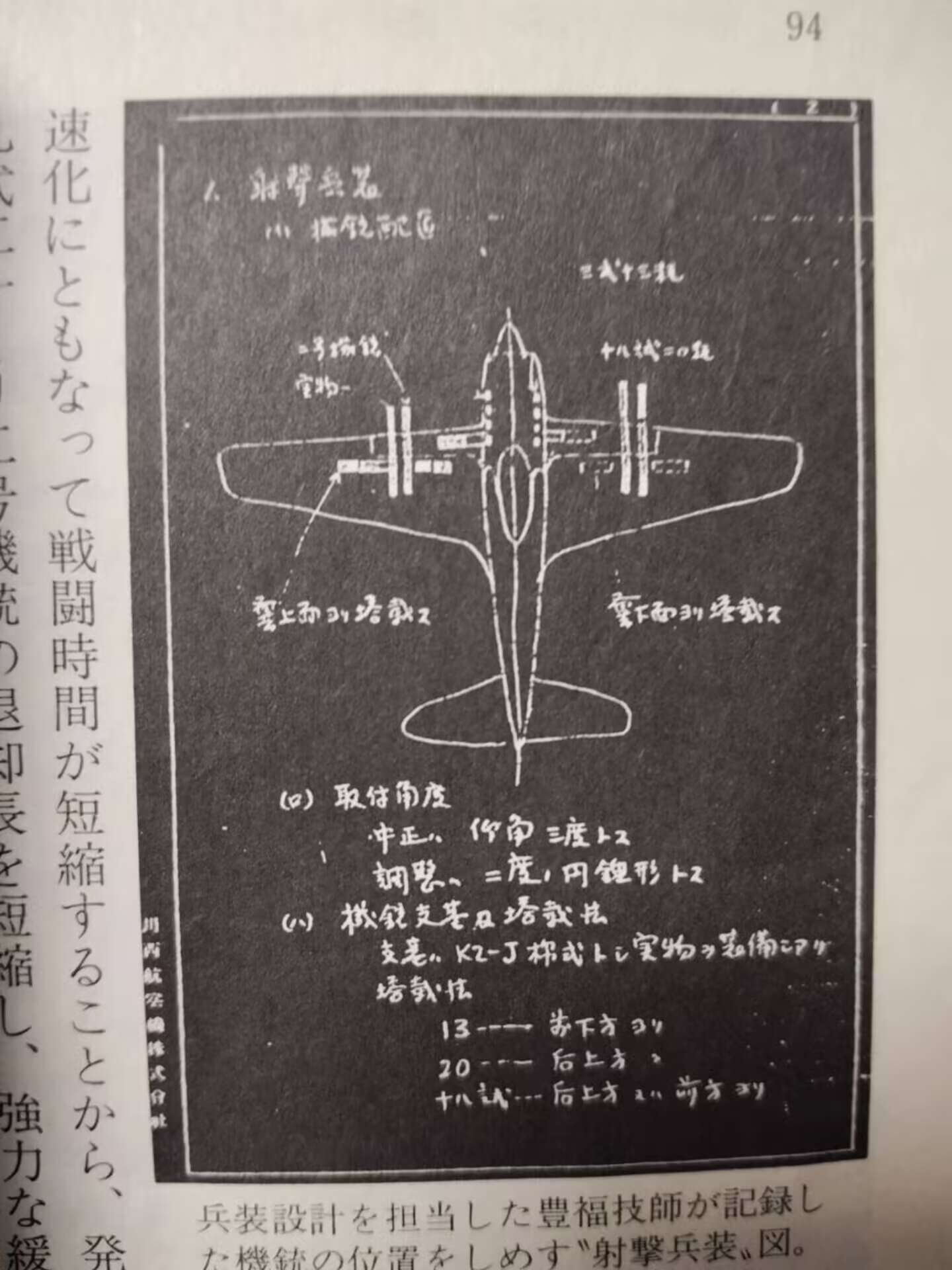 The book “Japanese Heavy Fighters 1937-1945” claims that the J3K was to be armed with 2 x 20mm and 2 x 13.2mm but it is not known in what arrangement.