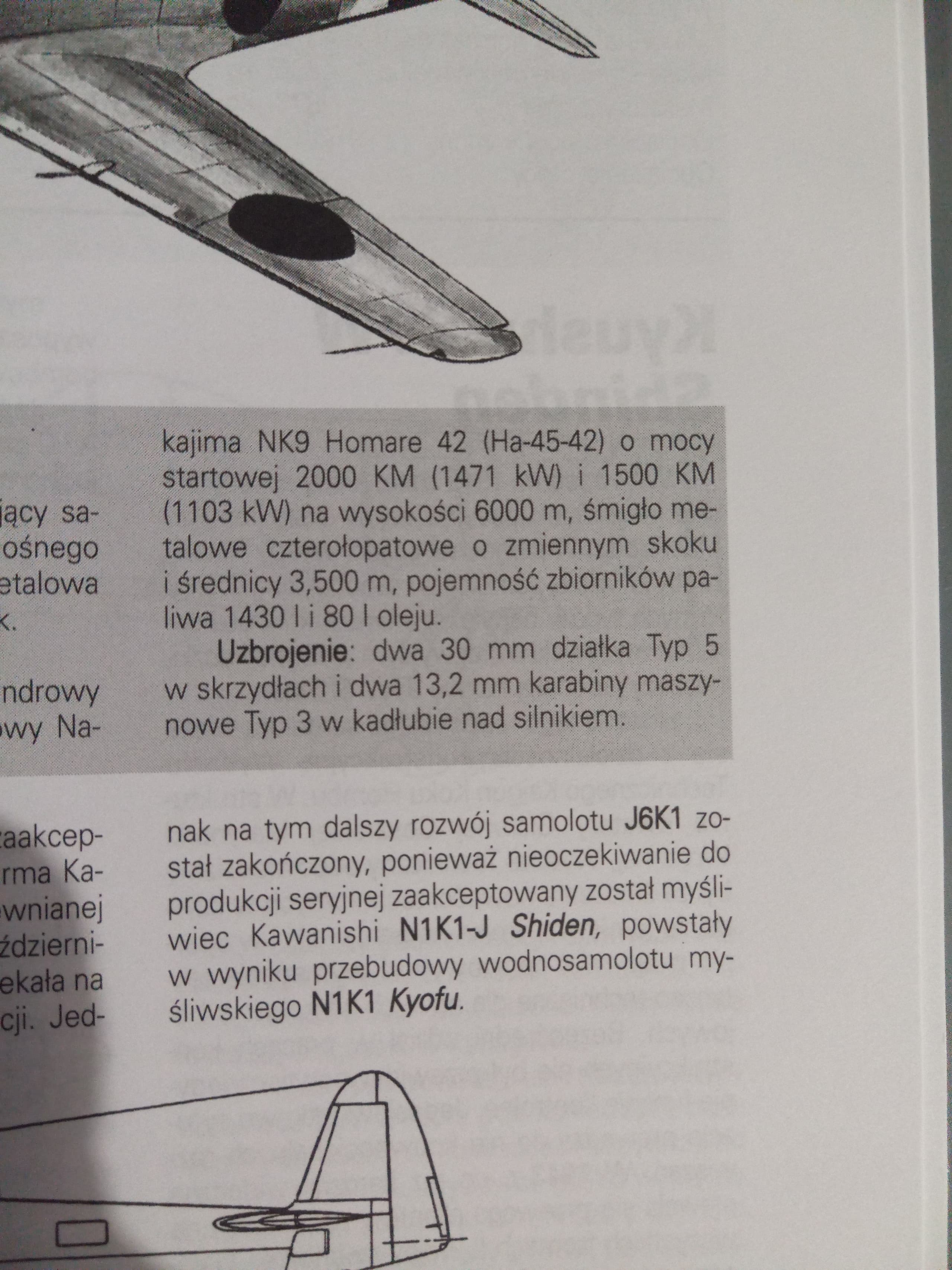 I suppose both designs underwent some alterations while just in paper/mockup forms, and so there’s a lot of conflicting information taken from different periods. The 2x 13.2mm + 2x 30mm armament also seems a little dubious, the J2M was a much smaller plane but they stuck two 30s and two 20s in the wings up from 4x 20mm; around this same time Kawanishi themselves would put 4x 20mm in the Shiden and Shiden Kai.