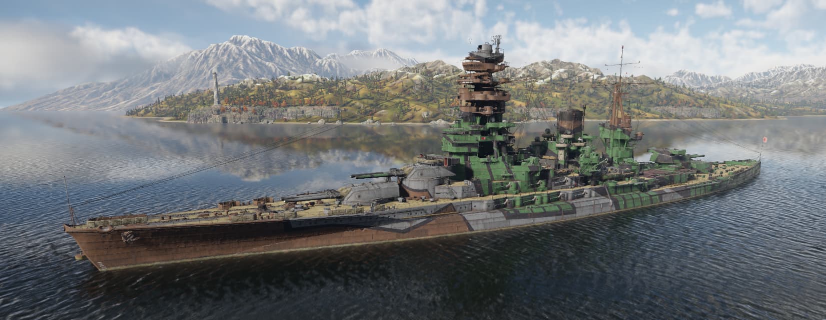 I don’t know why they’re so insistant on not giving the actual historical camo (green splotches and light gray stripes on a darker gray basecoat) or simply letting us purchase the standard IJN gray as an optional camo for all of the premium ships.