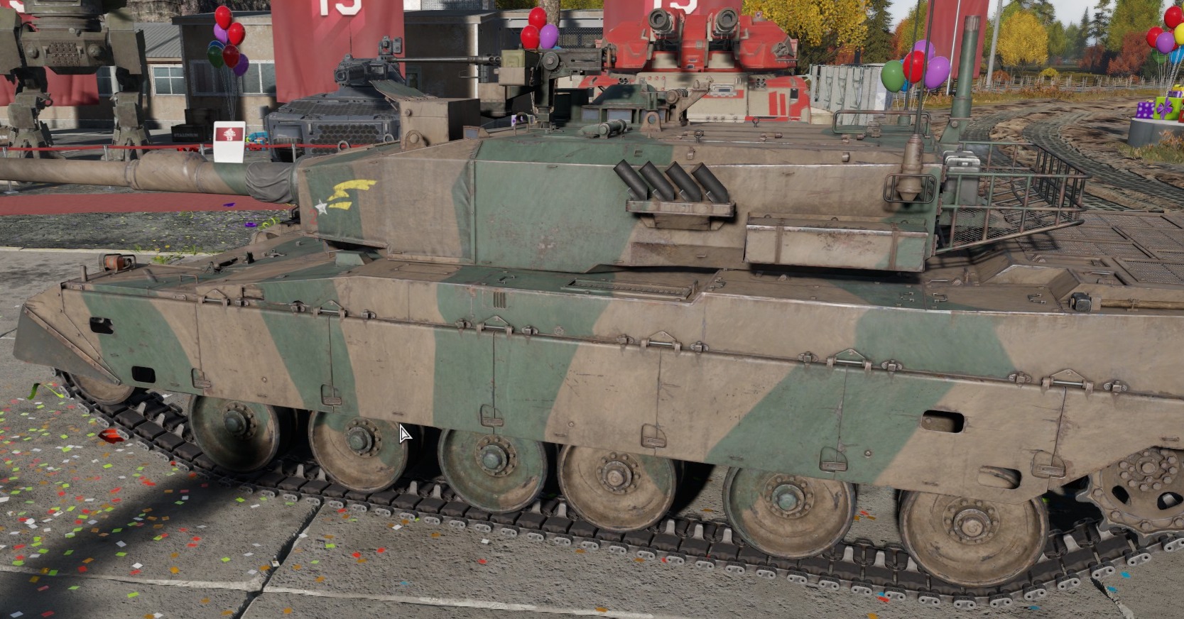 is one of the first mbts to be added in the game and since then it has these odd details that stick out like a sore thumb, like the smoke grenade dispatchers being black instead of matching with the color of the tank, the composite armor looks like its covered in canvas and you can see the wrinkles in the corners