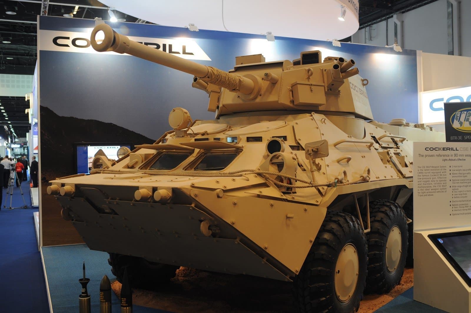 BTR-3E1 w/CSE 90LP was a private venture that first appeared at IDEX 2013, a convention centered in Abu Dhabi, and intended primarily for Middle Eastern customers early on.