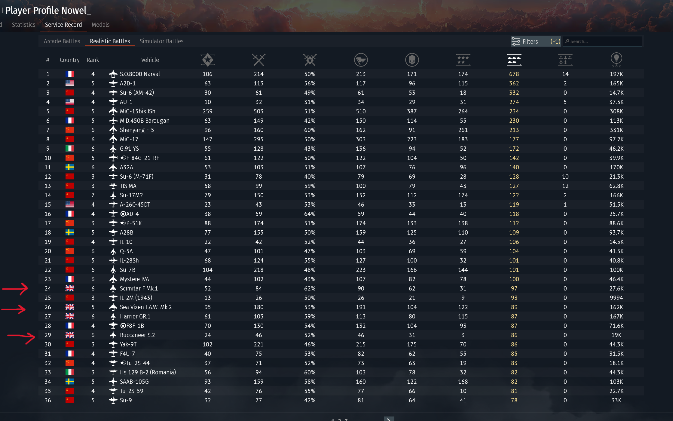 The only vehicle on the first 2 pages is the FJ4b VMF, and im astonished you only have 43 ground kills in it. I wish i had it purely to carry 5 bullpups. So in reality i dont think its wise to talk about a weapon system which you have no experience in, especially when the person you are having a discord with provides evidence and, has 3 bullpup carriers on their profile on the first page, (aircraft, ground targets destroyed selected, same as with your service record screenshot.)
