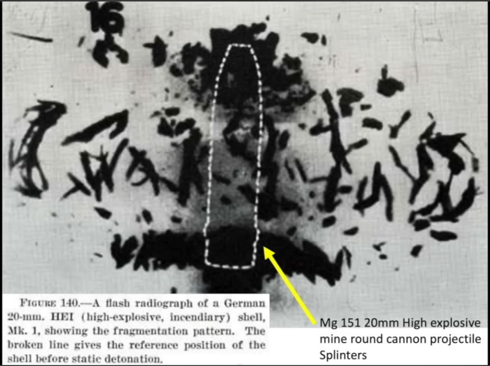 That most likely an FI-T shell. You can tell because even on impact there are already fragments from the back of the shell that hit the fuselage and the black smoulder on the impact hole from the incendiary and tracer composition igniting in an instant.