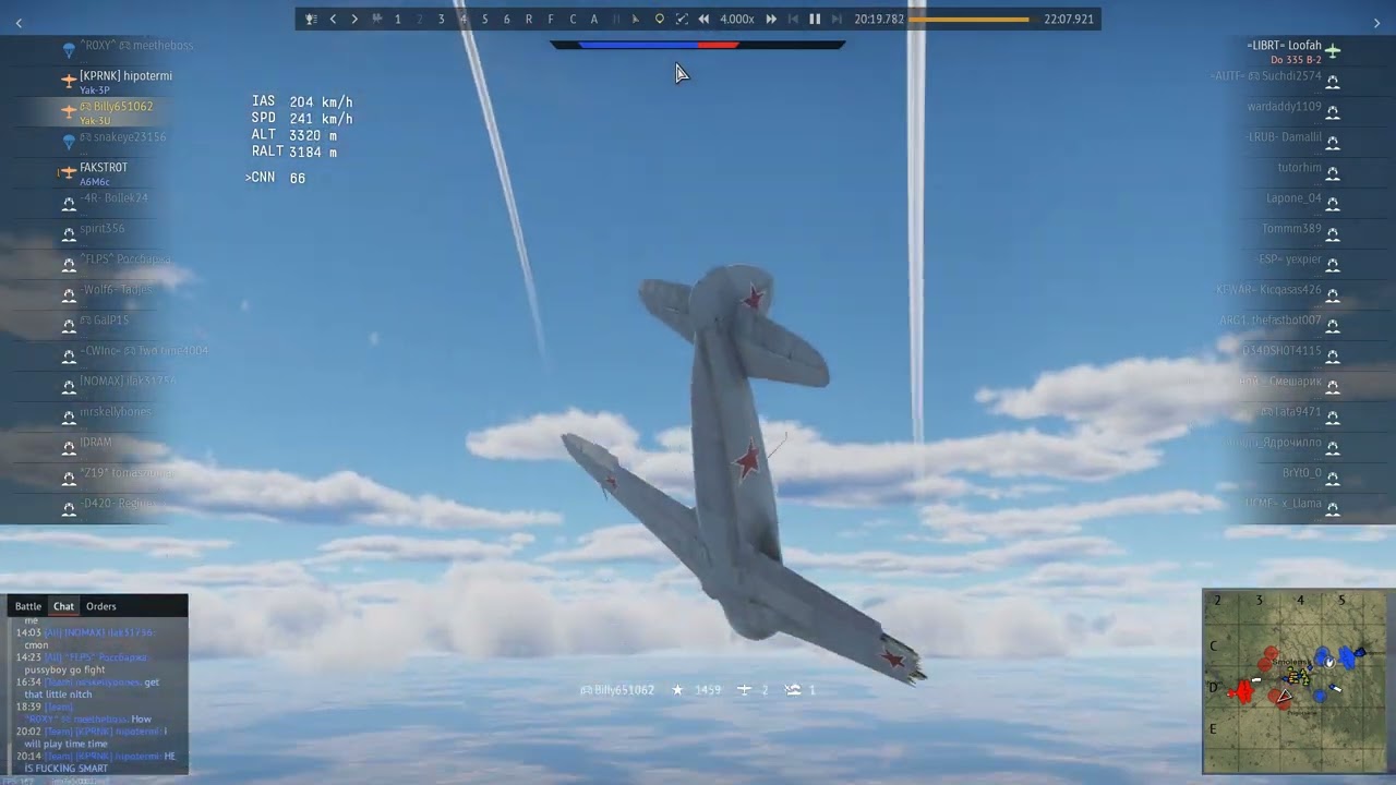 Anyway, my aim absolutely sucks, missed all 30mm shots, I played this match like an absolute muppet in general, but god damn, I thought he’s not going to be able to stall fight without a wingtip, yet he completed super low speed stall maneuver no problem. Then he almost got me with no left wing. Then he lost half his elevator and got his rudder heavily damaged and it did not cause any further problems.
