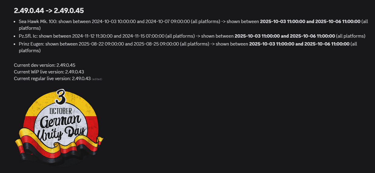 Well it’s best I bring it up and bring attention to it. It’s seen return on War Thunder’s 5th and 10th Birthday, as well as the 30th anniversary of German Unity, so logically it would make sense to come back on the 35th anniversary of German Unity day, following the increment of 5 years for WT’s birthday.