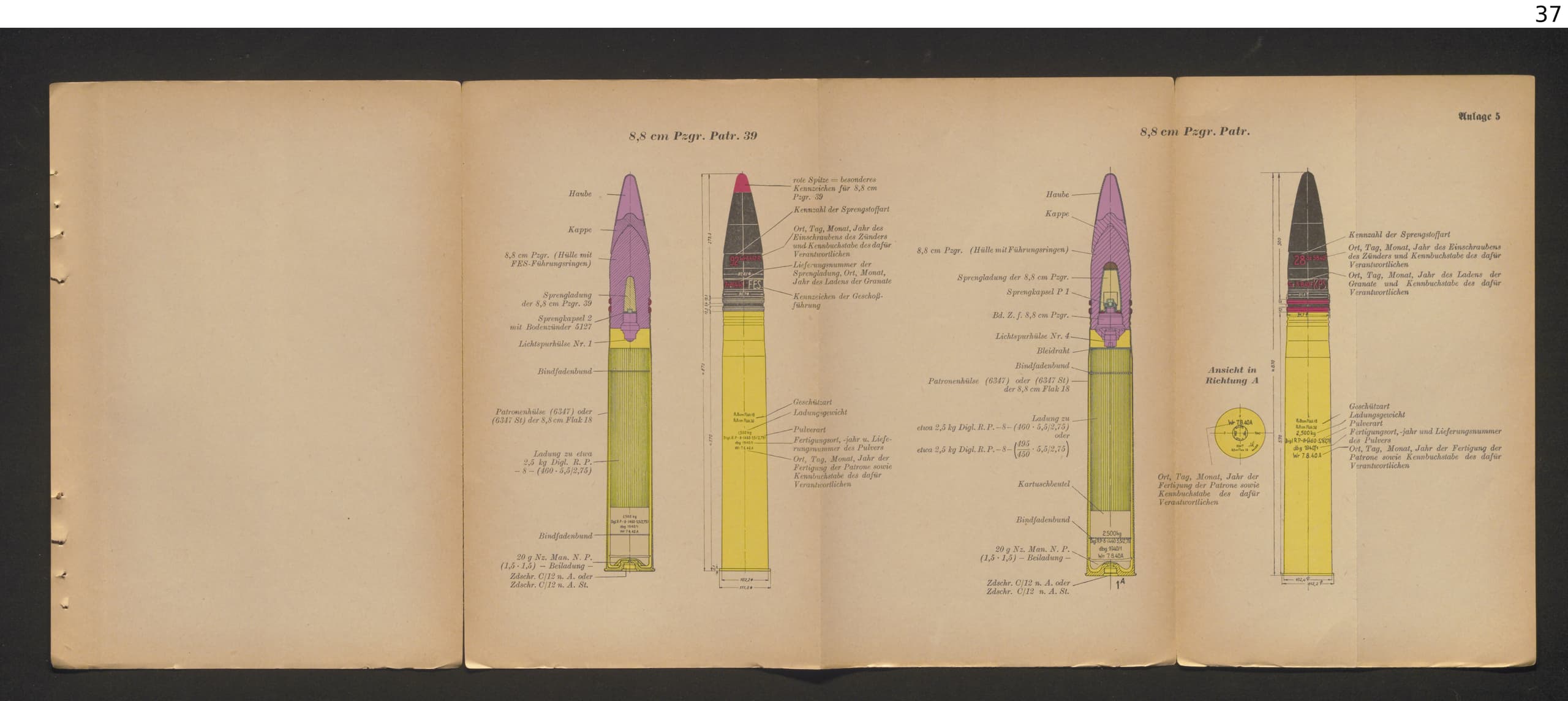 Note, on different rounds, with same casings the length may differentiate, duo to crimping on the shells with holding grooves. Best example the Pak 40s 718mm case, only beeing ~715mm on the Pak 36(r) shells.