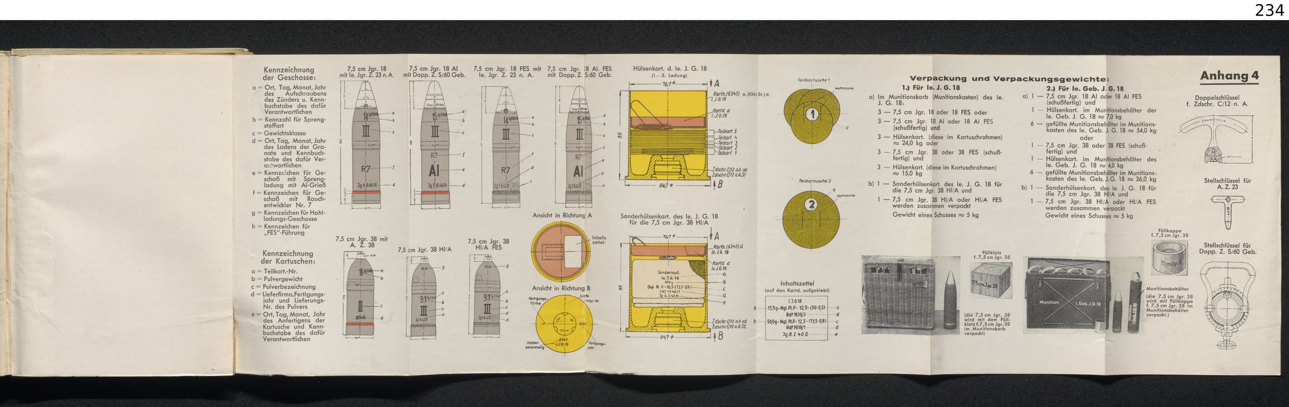 H.Dv. 119 A Nr.2 Schußtafelsammelheft für leichte Geschütze für die Feldkanone 16 für Kanonengranaten 16, Feldschrapnells 96 (umg.) mit Bleikugel und mit Stahlkugeln, Kanonengranaten 15 mit Panzerkopf, C-Geschoß und Anhang 1 für Leuchtgeschosse Februar 1925