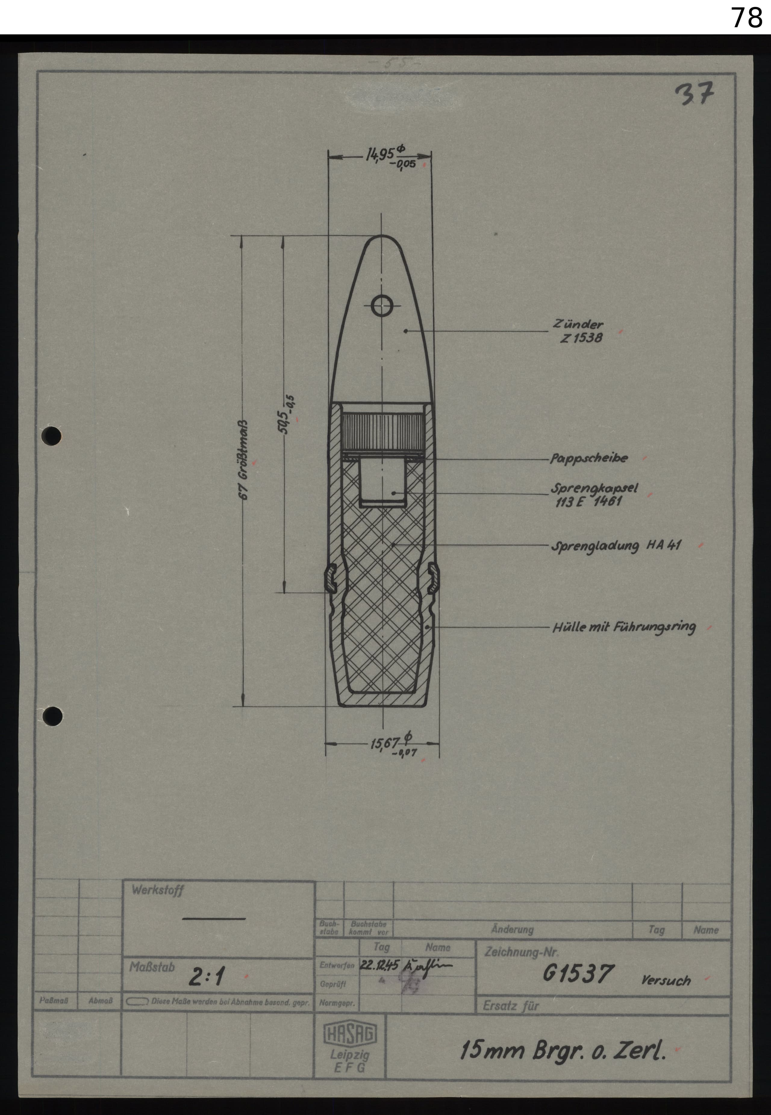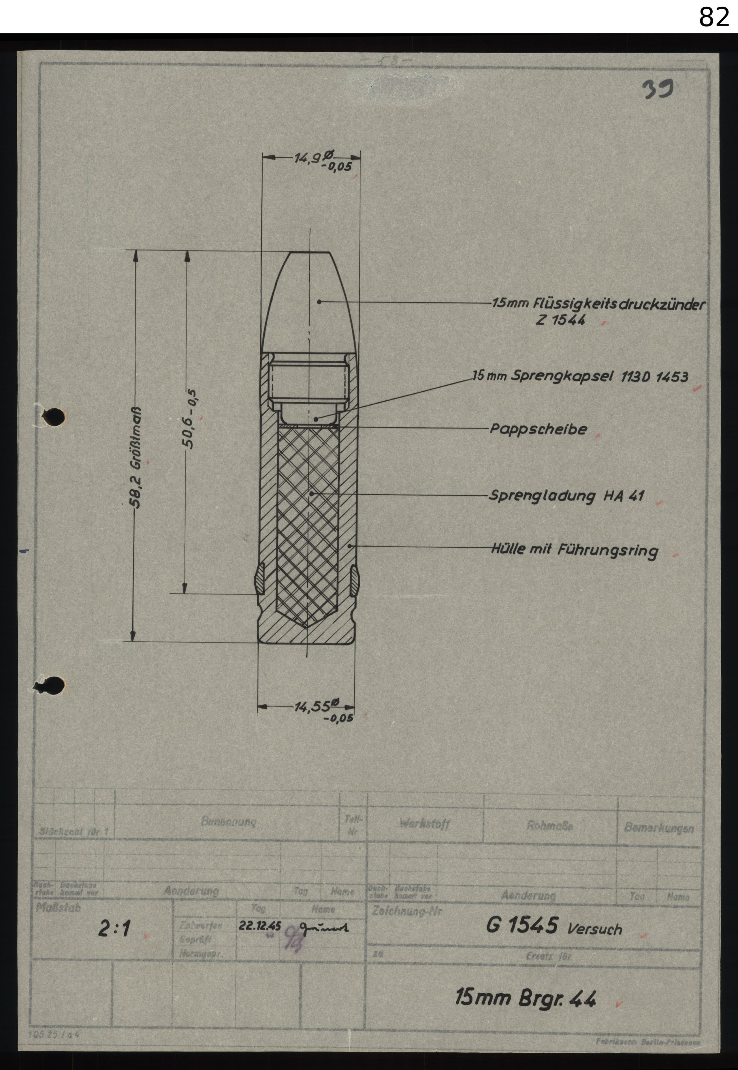 @KillaKiwi we had a talk some time ago, where i saw for 15mm ammo, that the round was to be replaced by M.Gr. and we came to the conclusion that most likely it was an copy error, but looking at a document again, there actually was a 15mm M.Gr. desinged in 1944. It is under an incorrect designation, but the filler is designated as HA 41.