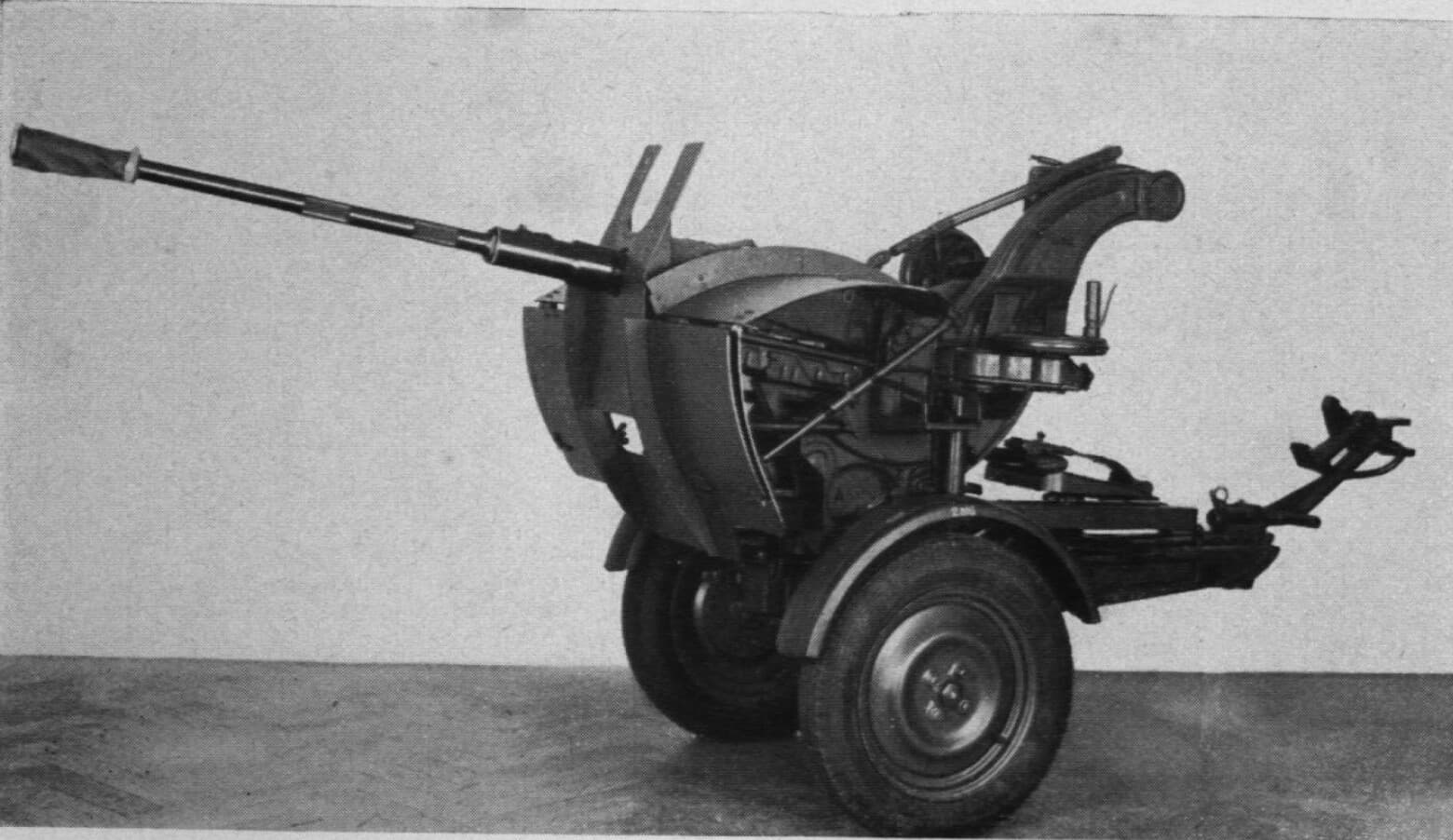 Intended as a improvement for the Flak 43, based mostly on it, it increased the firepower enormusly, with an new L/77 barrel and new 37x280mmB casings with 400g prpellant, intended for mounting on the Flakpanzer V (Flakpanzer 341) 4 were produced, 2 for tests and 2 for reference.