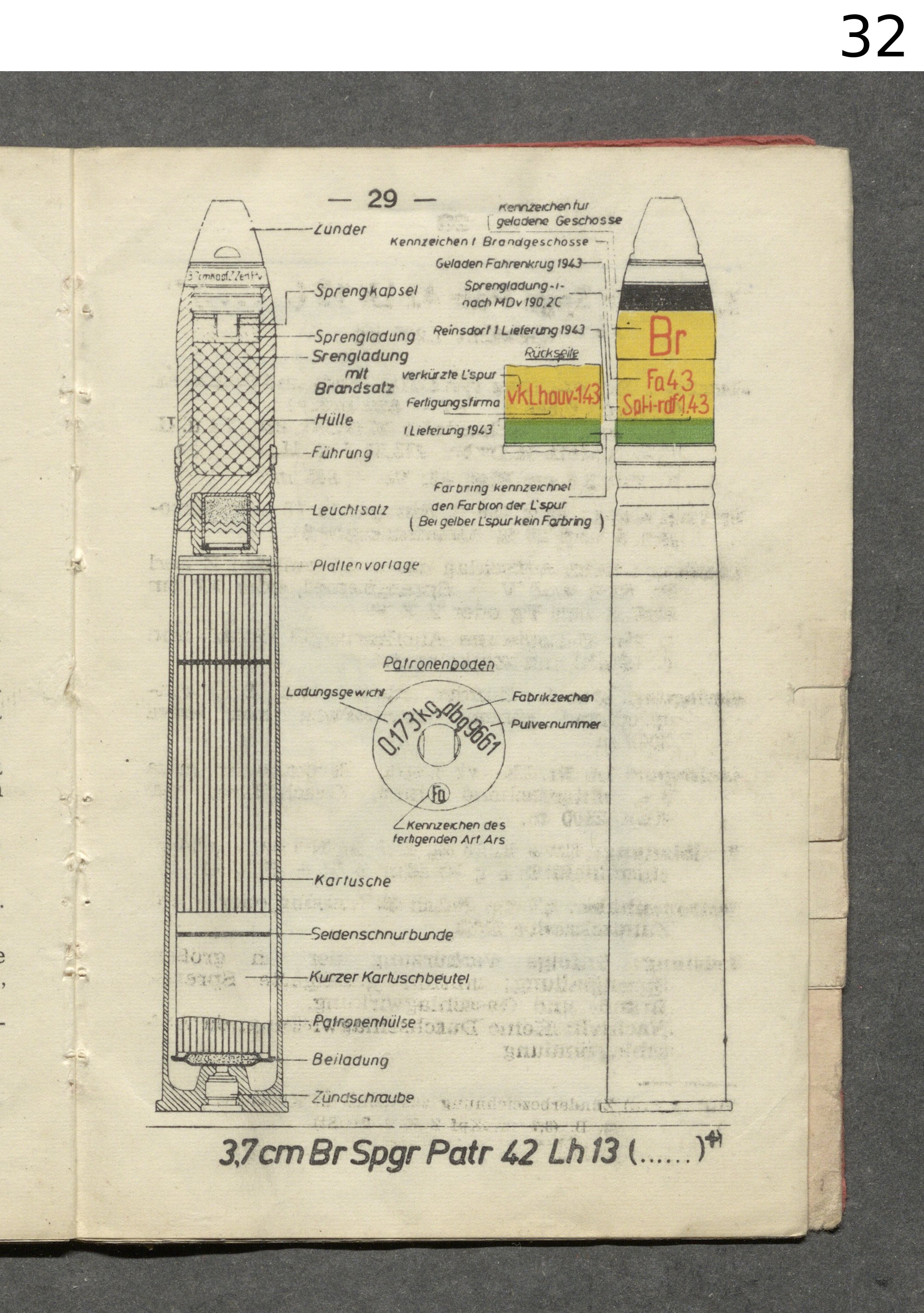 If the round has an Incenday effect the type is written in ( ) behind gr. if it has an own fuzeing (In Ap rounds), but not if the incenday effect is set free with detonation of the main charge (for example in the 3 cm Pzbrsprgr. L`Spur o.Zerl.)