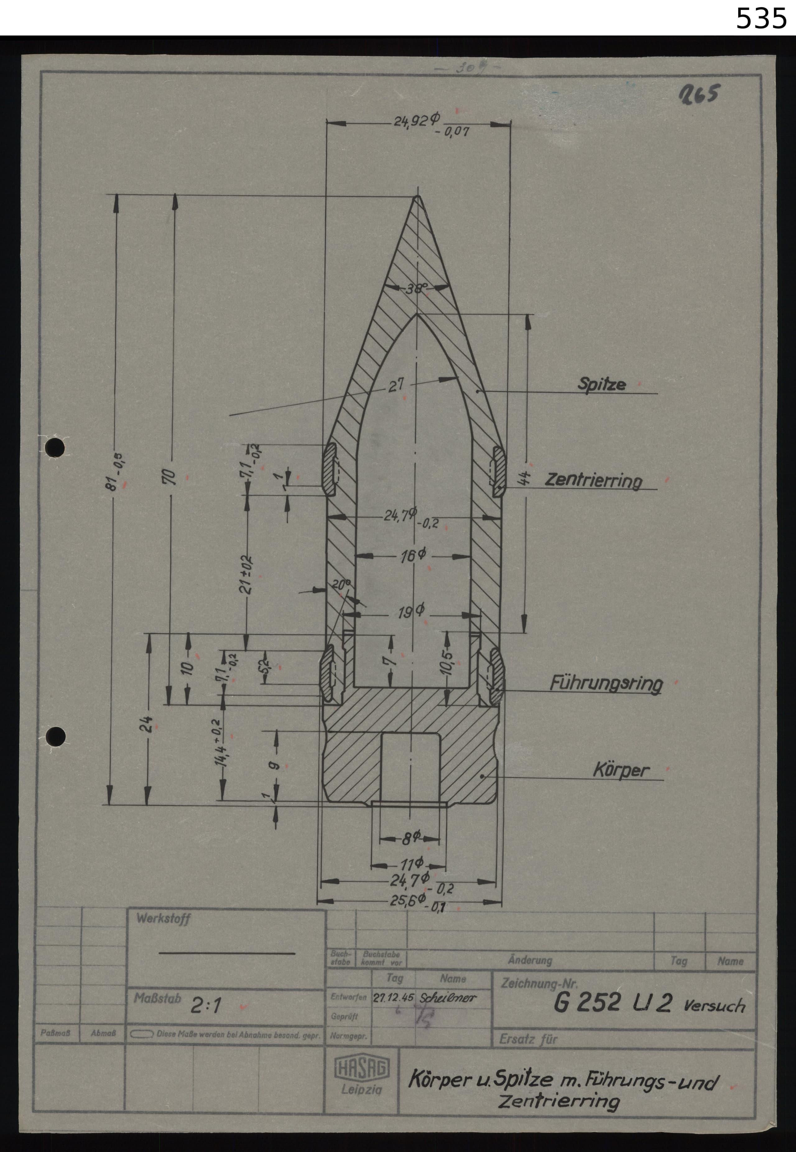 Old design without boattail, prewar, replaced by Sprgr. L’Spur W, only remaining stock was used in the war.
