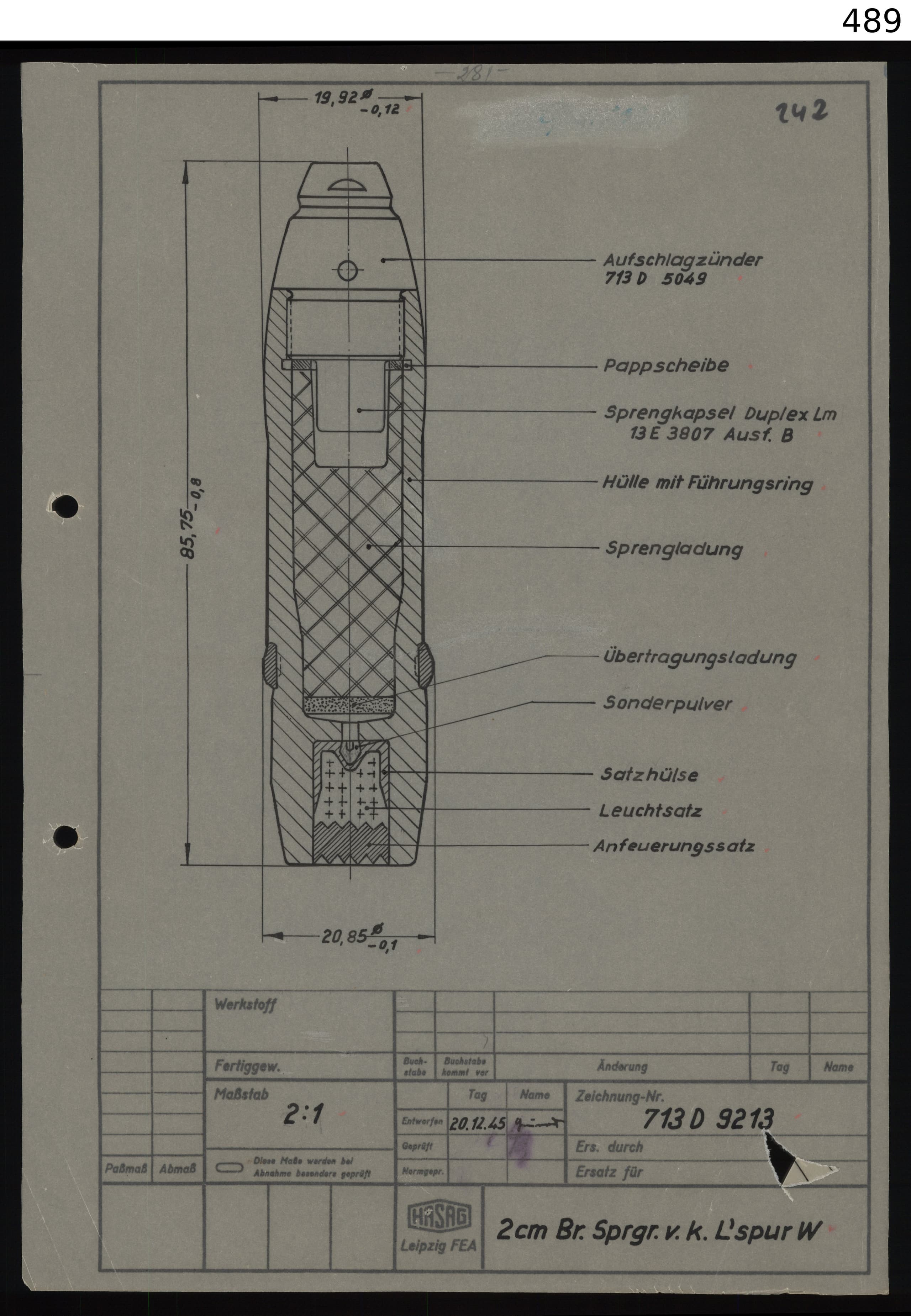 While this round is 730g heavy and only has 30g Np.10 or H.5 AlGrieß (51g TnTa), an adapted variant with smaller tracer was most likely what is described on the datasheet.