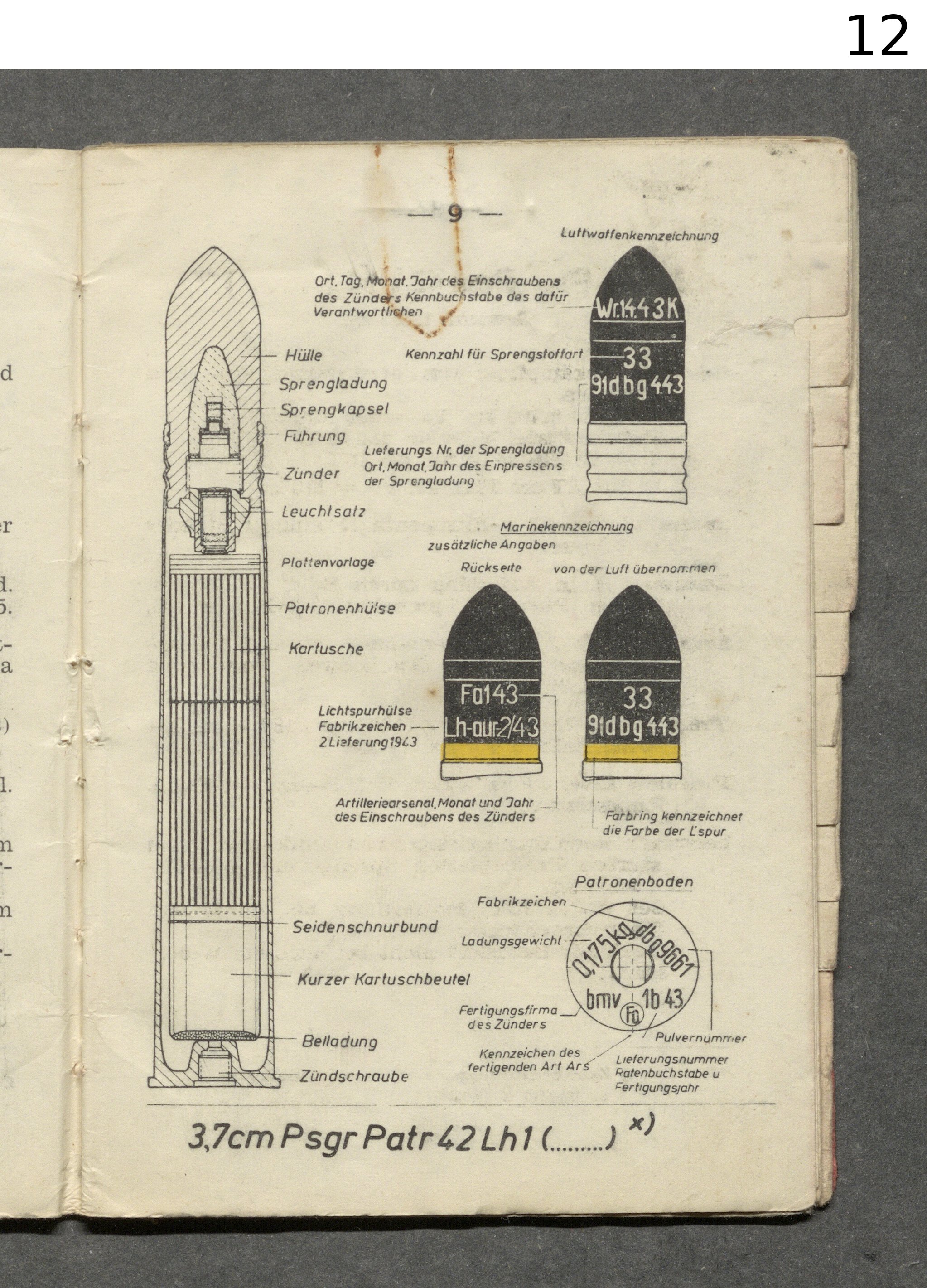 Navy 3,7 cm Flak manual (3,7 cm Psgr./Pzgr.18 700g (different tracer) 790m/s.