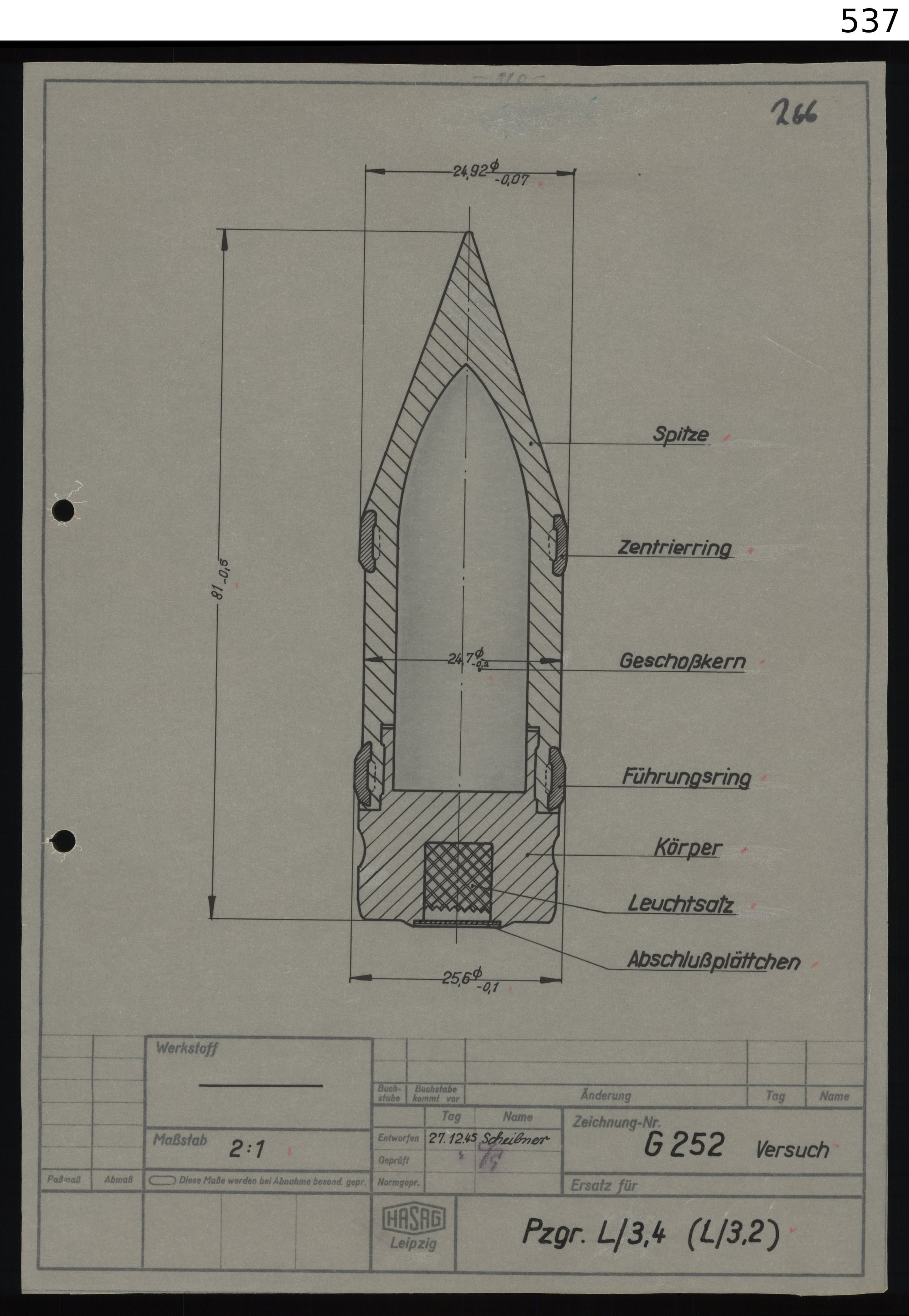 Note: Used against ground targets. Soft and armored. 3g White Phosphor Core. Were fully replaced by the empty ones and later .Zerl in the Desert and other hot places, as the phosphorus had a nasty tendency to self ignite in hot weather. The “Ph.” marked ones were standard with the filler, however they also existed with an “O.” which indicated they didnt have a filler and were only 143g (and 830m/s).