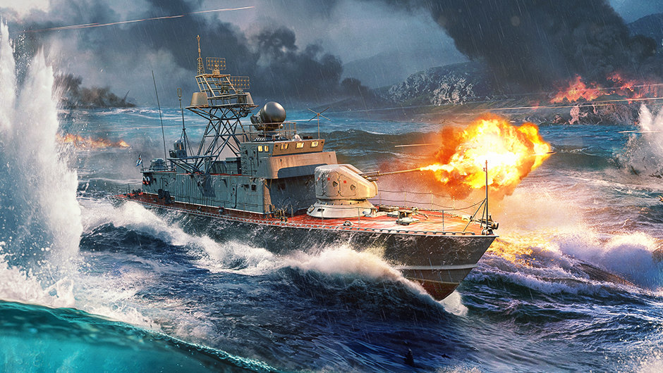 The AK-225 was developed as a patrol gunboat for the USSR’s allies. This small, fast vessel with a tracking radar features an impressive armament loadout consisting of an automatic 57 mm cannon with armor-piercing and high-explosive fragmentation rounds. It’s mounted on the bow, and the famous six-barrel AK-630 mount is mounted on the stern. The AK-225 can dispatch other boats and low-flying aircraft with ease!