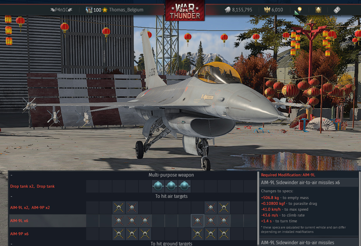 With the F-16A Block 15 Squadron vehicle you get 6x AIM-9M or 4x Magic2