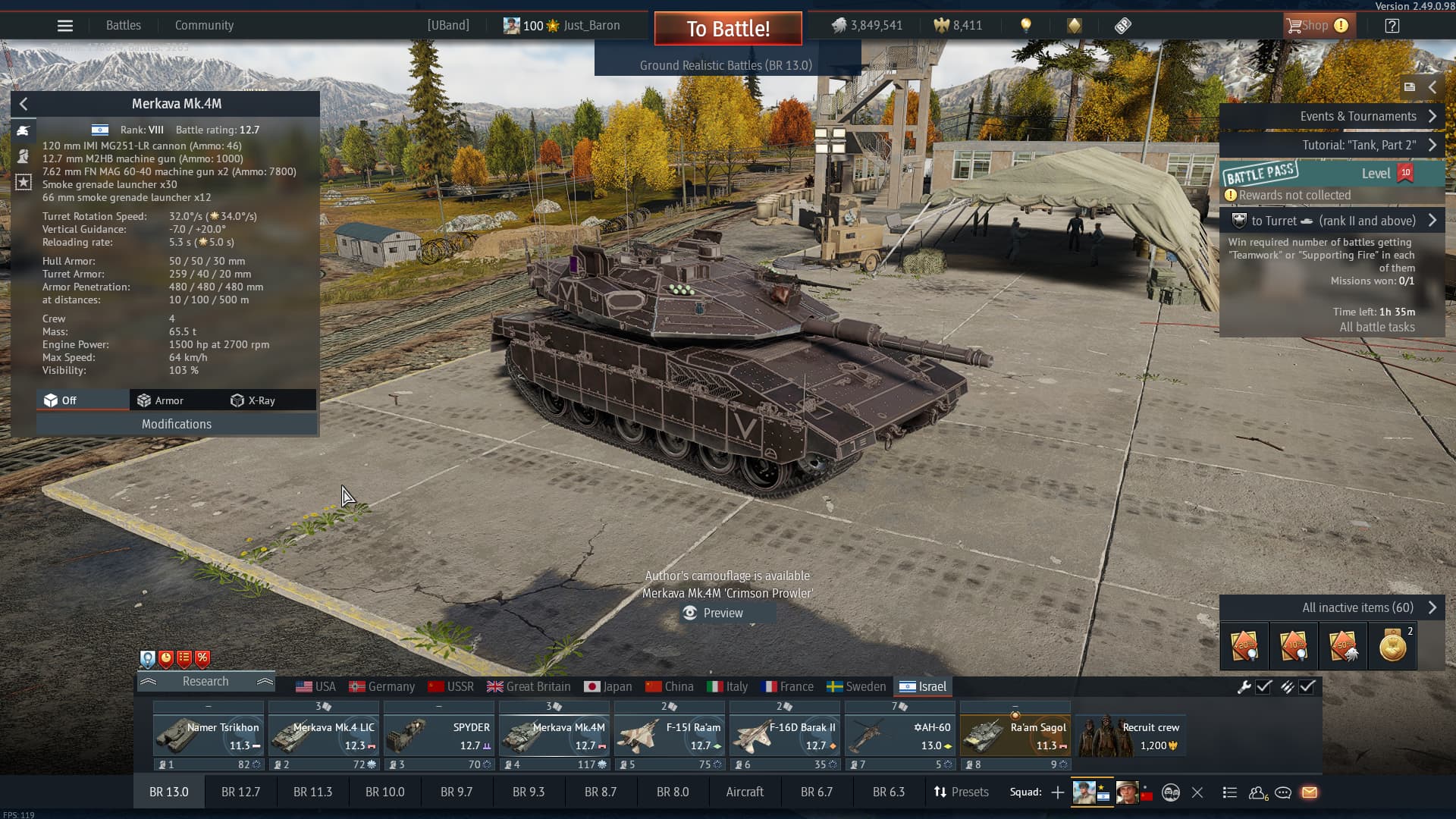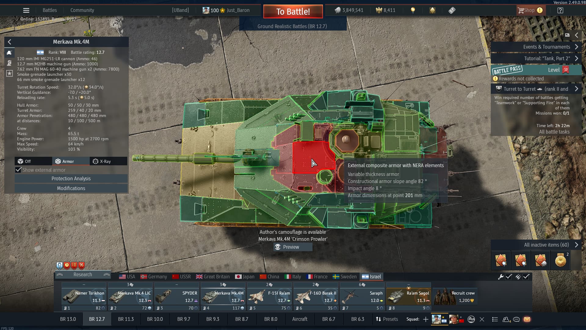 Just recently, the Merkava was nerfed back to back three times. First, it lost its engine spall absorption, then its roof armor overpressure resistance was reduced by eightfold, and now it stands at 12.7, the same BR as the Leopard 2A7V and the M1A2 SEPv1/v2 Abrams. Its Kinetic protection values are roughly on par with a Leopard 2A4, if not worse as well.